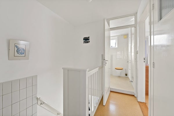 • Het toilet in de hal is half betegeld, voorzien van staand toilet en fonteintje.