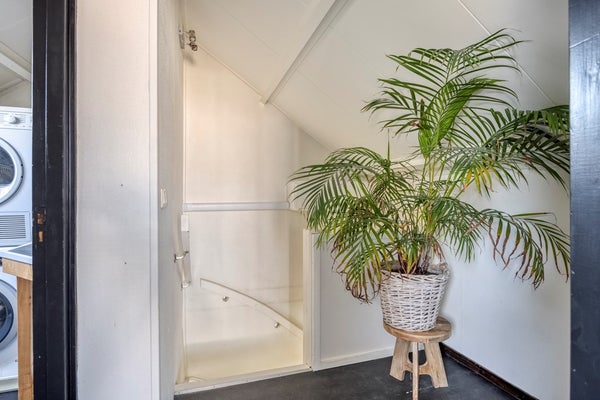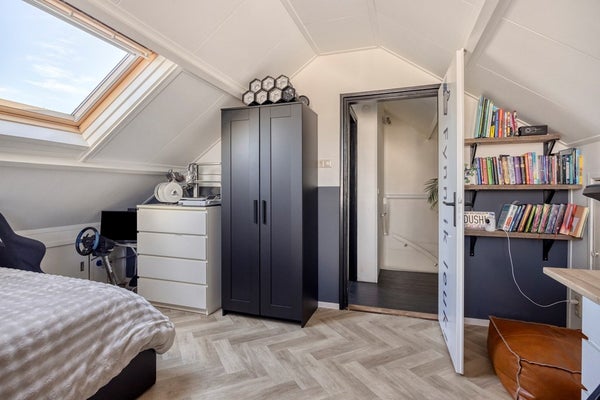 Via een vaste trap bereik je de tweede verdieping. Hier bevindt zich een volwaardige vierde slaapkamer. Daarnaast is er een aparte berging met de witgoedaansluitingen, Bosch CV opstelling (2009, eigendom) en een wastafel, wat deze verdieping extra praktisch maakt.