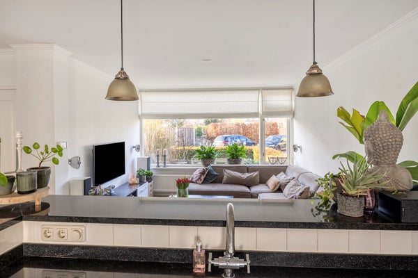 Entree/hal; biedt toegang tot de woonkamer en de halfopen keuken. De woonkamer is een prettige leefruimte met voldoende daglicht en een fijne sfeer. De halfopen keuken staat in directe verbinding met de achterzijde van de woning en biedt toegang tot de overkapping en de tuin. Vanuit de tuin zijn tevens de garage en de berging bereikbaar, wat zorgt voor extra praktische ruimte en comfort.
