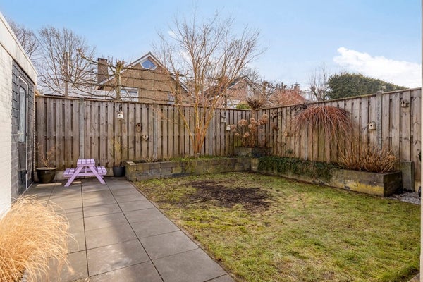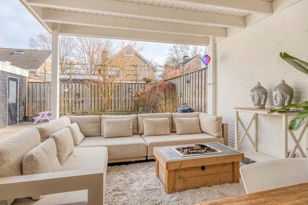 Vanuit de woonkamer heb je zowel zicht als ook direct toegang tot de achtertuin! De stijlvolle veranda is direct achter de woning gelegen en biedt ruimte voor zowel een zitgedeelte als ook een lounge set! Mede door de situering op het Oosten heb je in deze tuin altijd wel een plekje om te genieten van het buiten zijn!