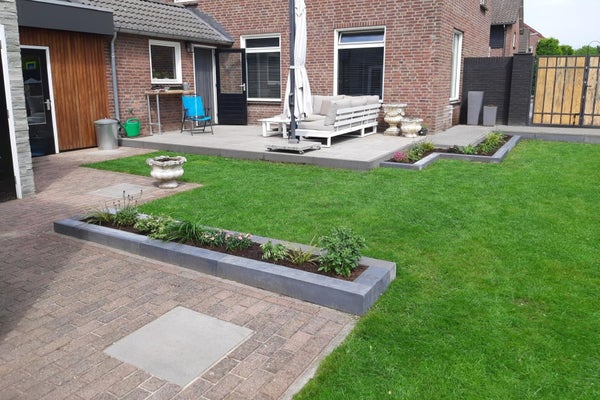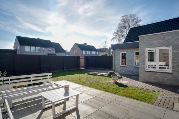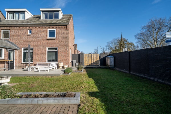 De zij- en achtertuin liggen op het zuidwesten en bieden volop zon. De tuin is ingericht met gazon, terras, een eigen achterom en een vrijstaand bijgebouw. De erfafscheiding bestaat uit een gemetselde muur met moderne strakke uitstraling.