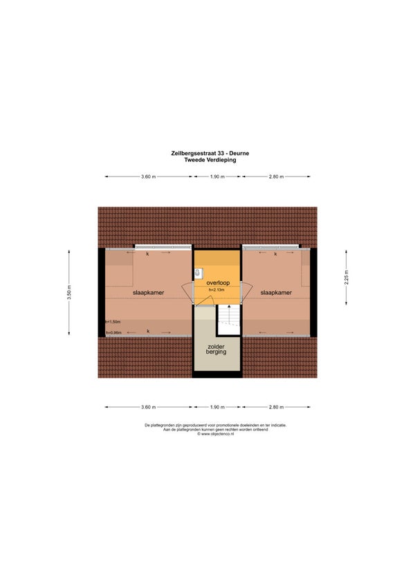 Via een vaste trap bereikbaar. Overloop met opstelling van de cv-ketel en toegang tot 2 extra slaapkamers, beide voorzien van een dakkapel en bergruimte achter de knieschotten.