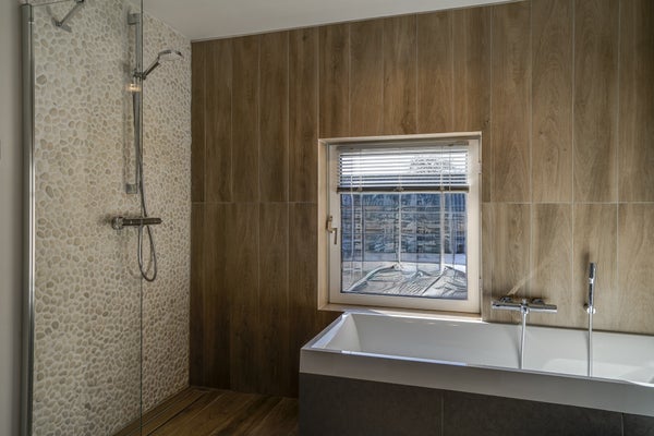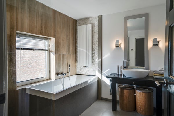Recent volledig gerenoveerd en modern afgewerkt, voorzien van een ligbad, inloopdouche, wastafelmeubel en designradiator.