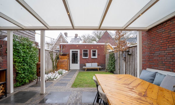 De achtertuin biedt veel privacy en geen inkijk, waardoor u in alle rust kunt genieten. De tuin is sfeervol en praktisch ingericht, voorzien van een nette overkapping waar u heerlijk kunt ontspannen.