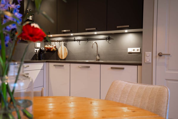 Apparatuur: koelkast, vaatwasser, inductiekookplaat en hete-lucht oven.