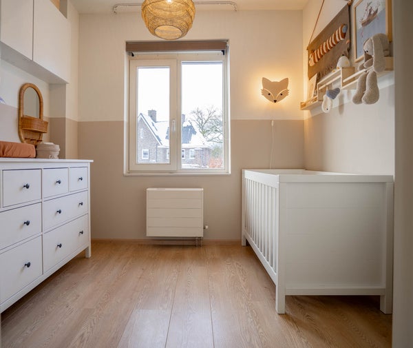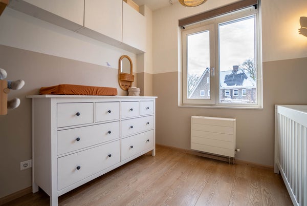 Op de eerste verdieping beschikt u over drie nette slaapkamers met laminaatvloeren, gestuukte wanden en fijne draaikiepramen met horren in alle kamers. Stuk voor stuk leuke, verzorgde slaapkamers—ideaal als ouderslaapkamer, kinderkamers of thuiswerkplek.