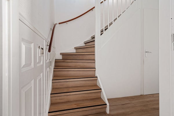 De tweede verdieping zal je verrassen. Veel licht, lekker veel ruimte, een extra kamer die zich perfect leent als slaapkamer, werkruimte of hobbykamer. Werk je deels thuis of studeer je veel? Zet je bureau maar vast neer, want hier kijk je uit op het groen terwijl je geconcentreerd bezig bent. Verder praktische zaken zoals wasmachineaansluiting, CV, knieschotten met berging: allemaal klaar om gebruikt te worden.