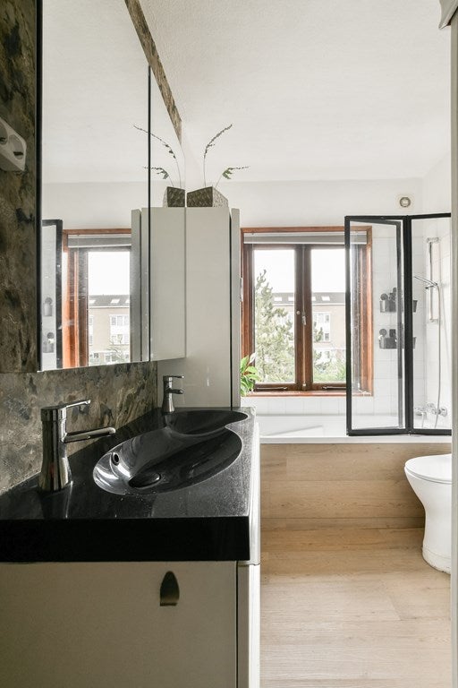 Op de eerste verdieping vindt u drie slaapkamers, elk met hun eigen karakter. De hoofdslaapkamer aan de achterzijde beschikt over openslaande deuren naar het dakterras, terwijl de andere slaapkamers ideaal zijn als werk-, slaap- of studeerkamers. De badkamer is voorzien van een bubbelbad en een infraroodsauna, wat zorgt voor ultieme ontspanning. De vloer boven is onlangs vernieuwd met PVC laminaat.