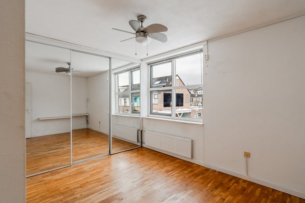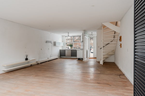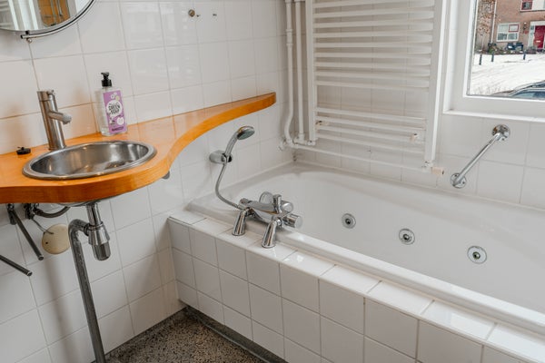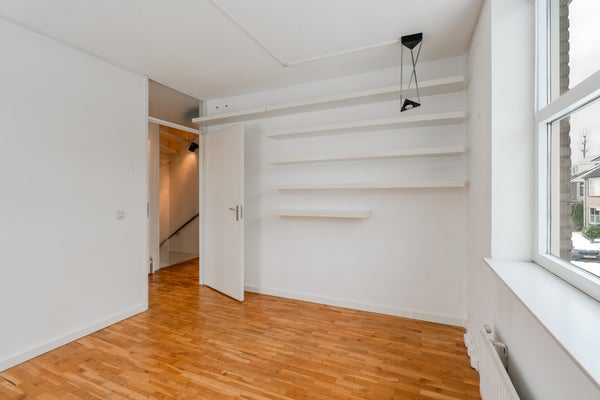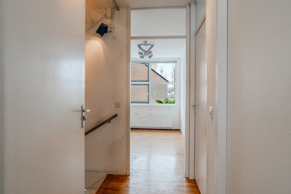 De woning beschikt over een entreehal met toegang tot de meterkast en het toilet. De open trap leidt naar de eerste verdieping met drie slaapkamers en de badkamer. De badkamer is voorzien van een ligbad, inloopdouche, wastafel en tweede toilet. De tweede verdieping biedt mogelijkheden voor een slaapkamer. De tuin omvat een berging met elektriciteit en toegang vanuit de achterkant. Gelegen op 128 m² eigen grond, zonder erfpacht. Gratis parkeren mogelijk in de omgeving.