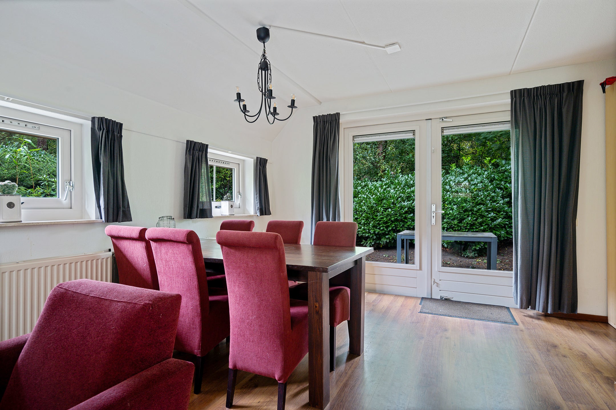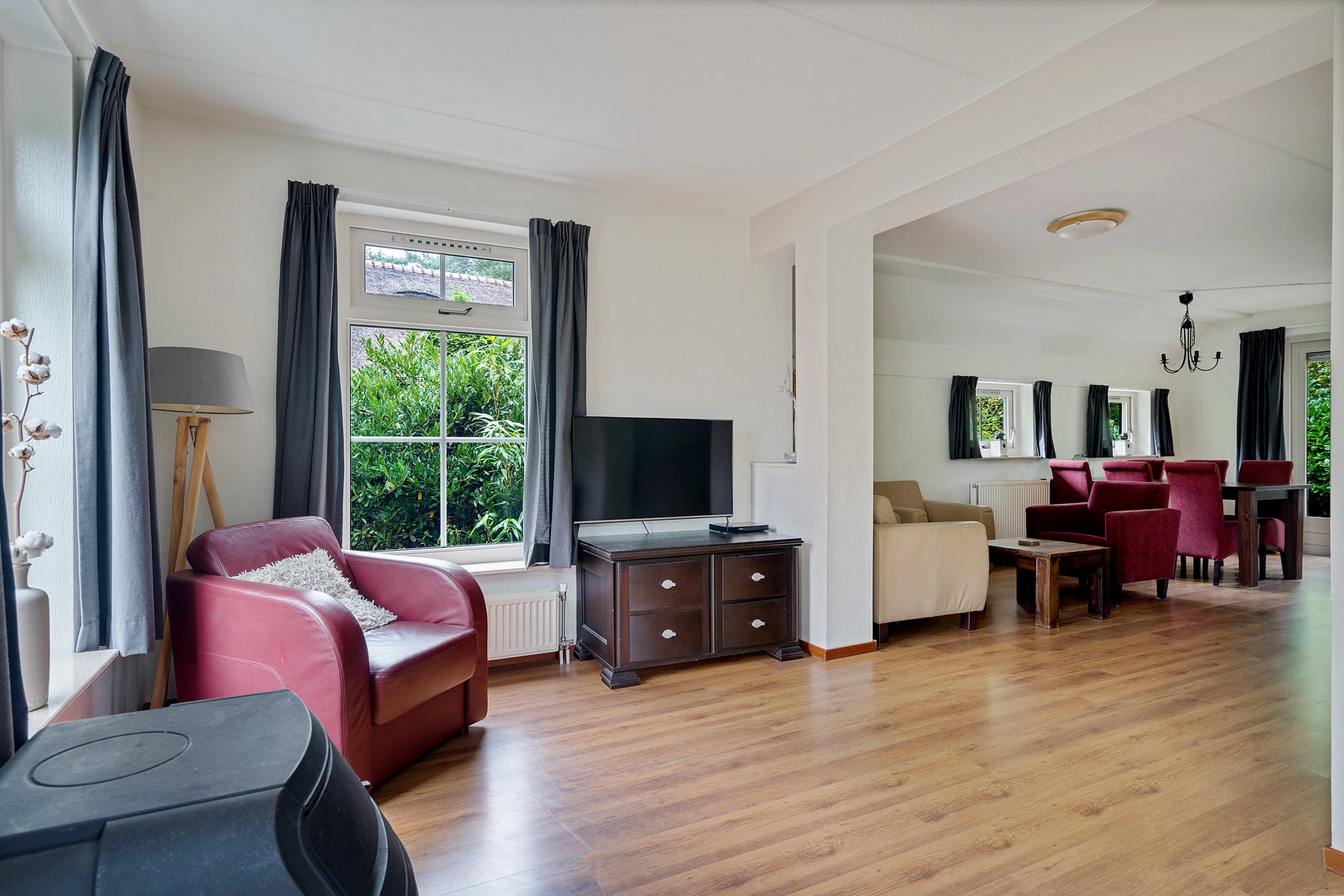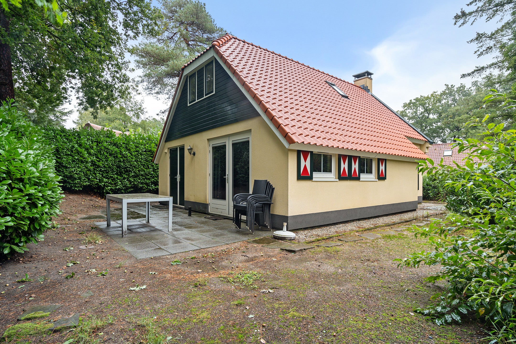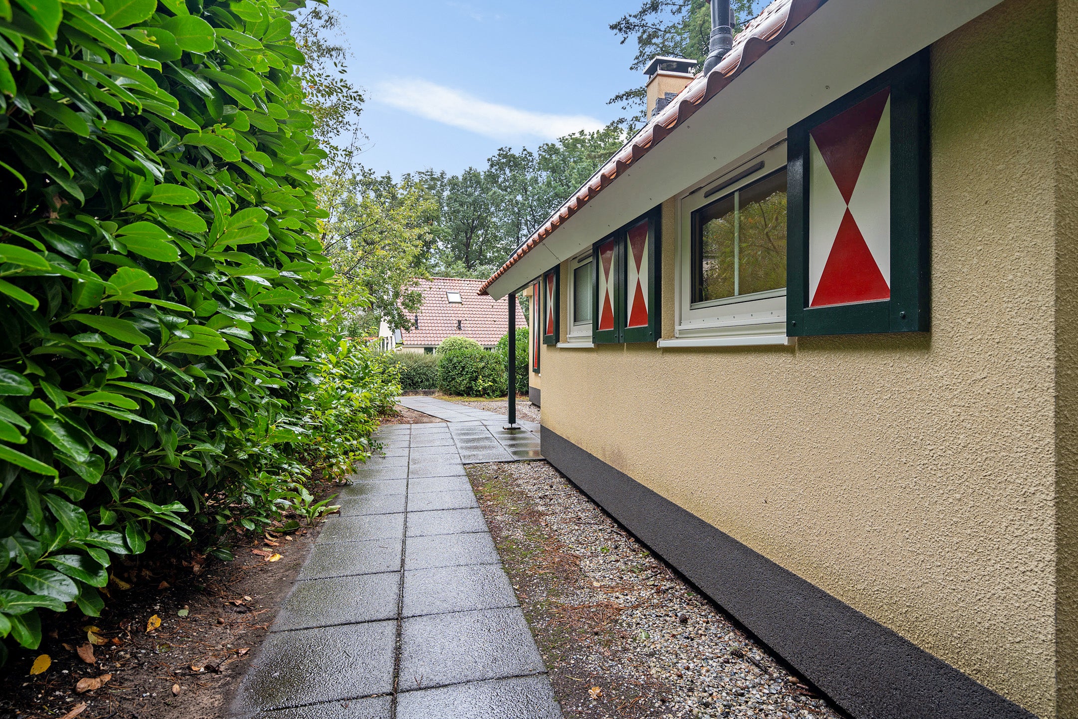 De badkamer is uitgerust met een ligbad, douche en wastafel. De bostuin rond de woning biedt volop ruimte en privacy, met een parkeerplaats op eigen terrein. Het landgoed zelf heeft faciliteiten zoals een receptie, restaurant en verwarmd binnenzwembad. Permanente bewoning is niet toegestaan. Met een woonoppervlakte van 84 m², inhoud van 305 m³ en volledig isolatie, is dit de ideale plek voor wie rust en natuur zoekt.