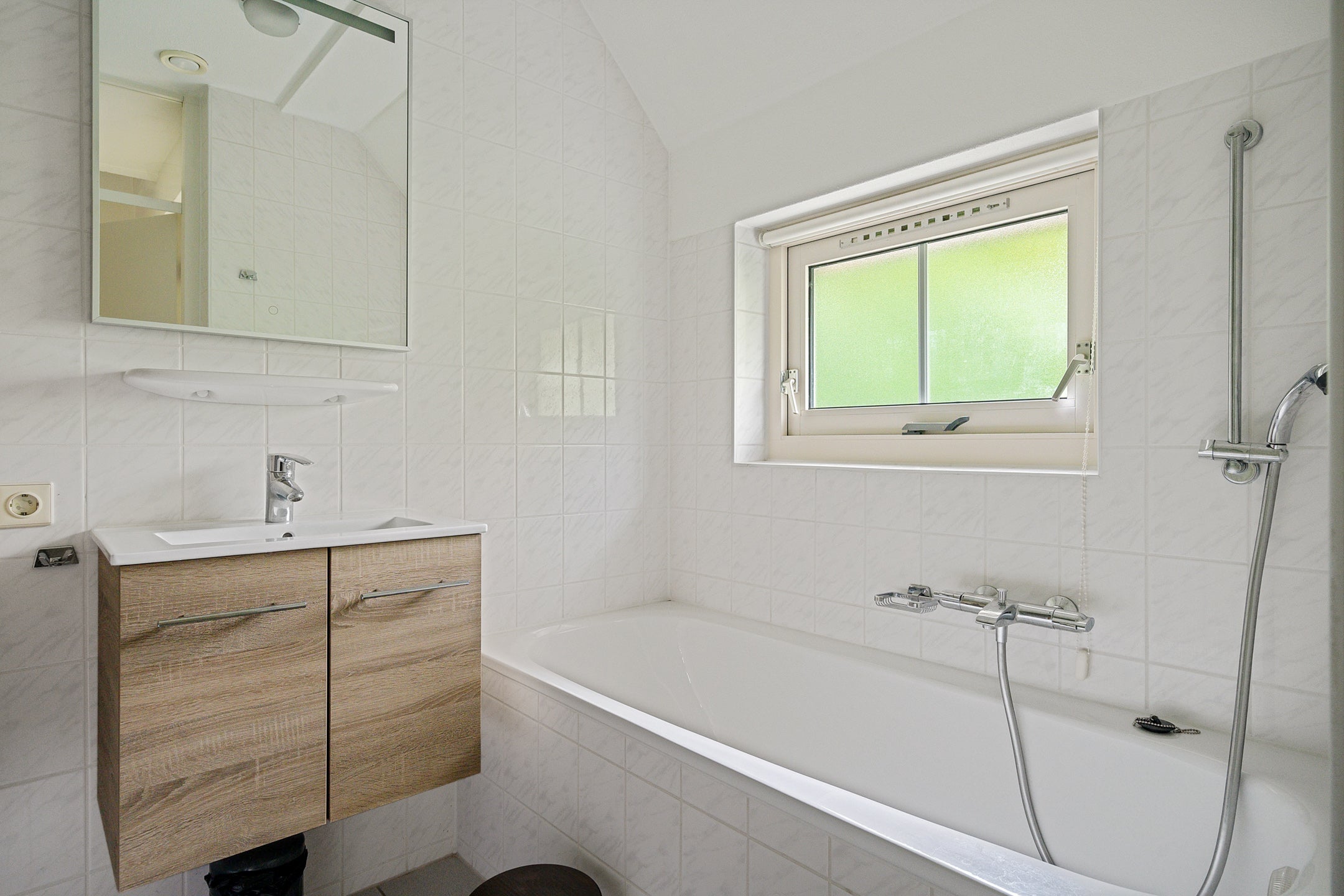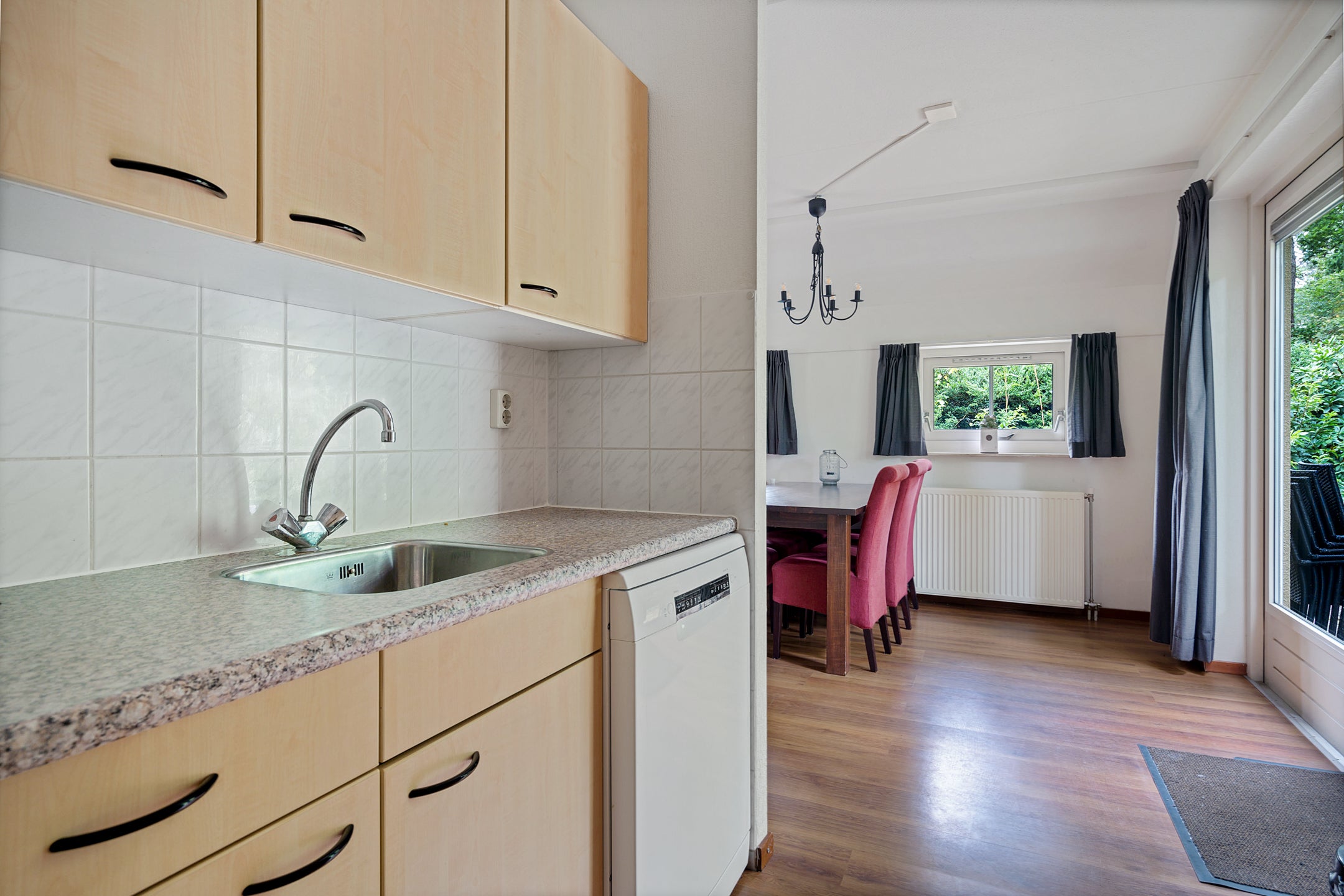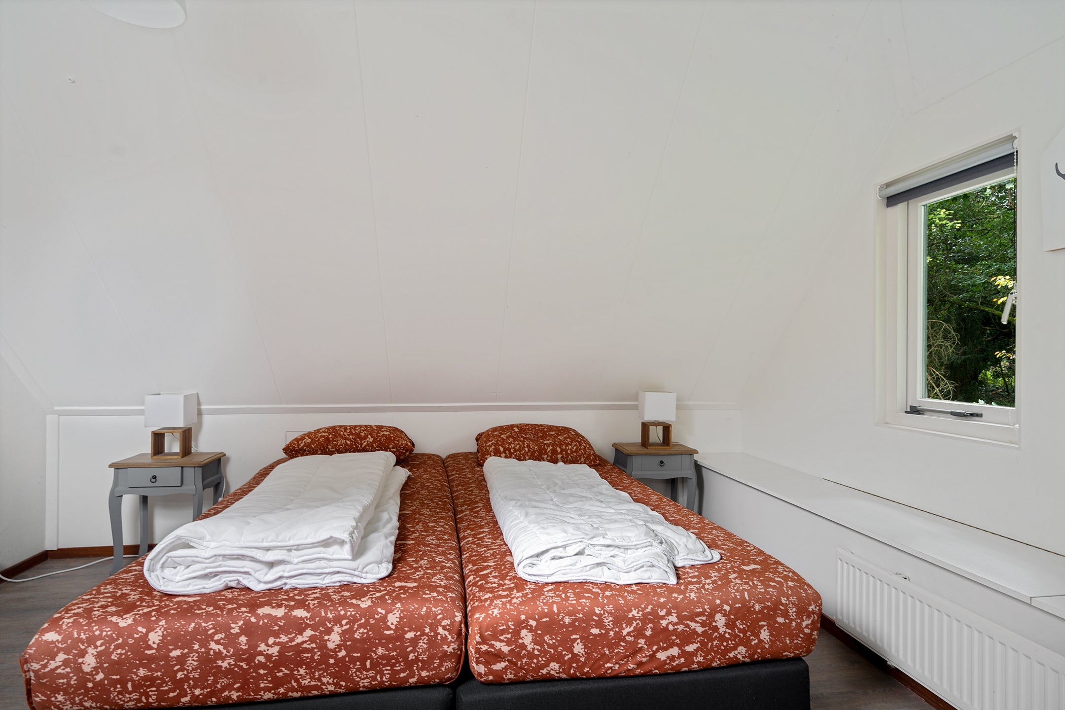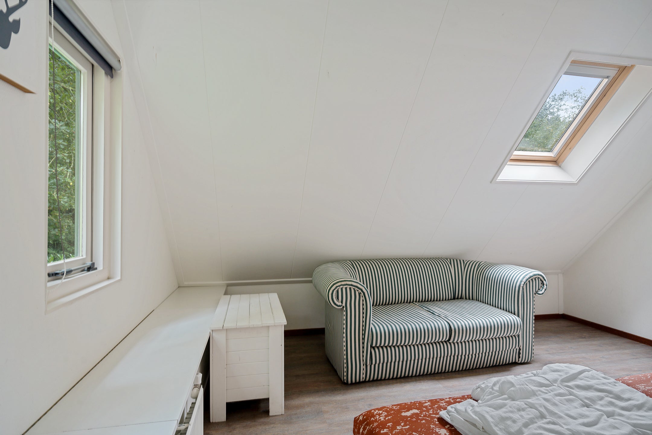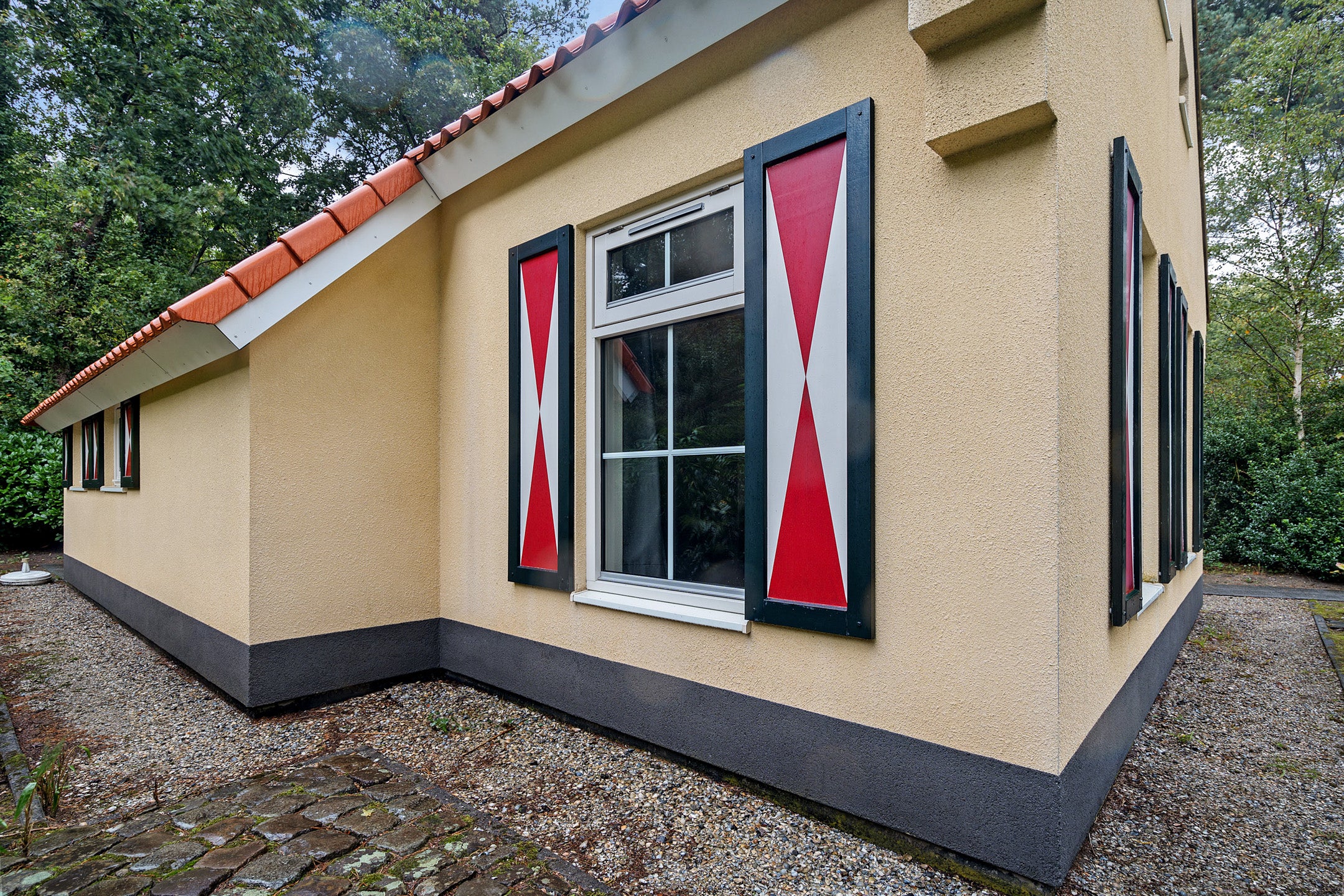 De badkamer is uitgerust met een ligbad, douche en wastafel. De bostuin rond de woning biedt volop ruimte en privacy, met een parkeerplaats op eigen terrein. Het landgoed zelf heeft faciliteiten zoals een receptie, restaurant en verwarmd binnenzwembad. Permanente bewoning is niet toegestaan. Met een woonoppervlakte van 84 m², inhoud van 305 m³ en volledig isolatie, is dit de ideale plek voor wie rust en natuur zoekt.