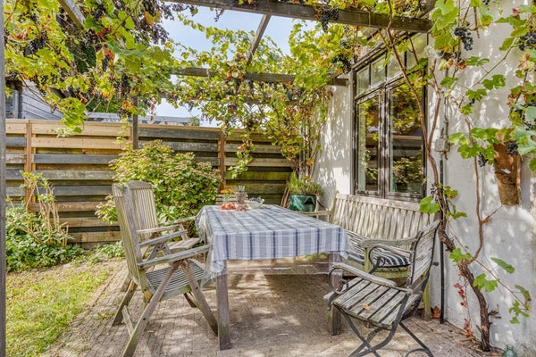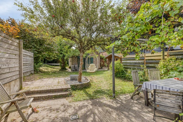 Achter het huis is een heerlijk diepe achtertuin van maar liefst circa 40 meter, gelegen op het oosten. De tuin is ingericht met een groot gazon en diverse (fruit)bomen en biedt volop ruimte om te spelen, te tuinieren of gewoon te genieten van het buitenleven.