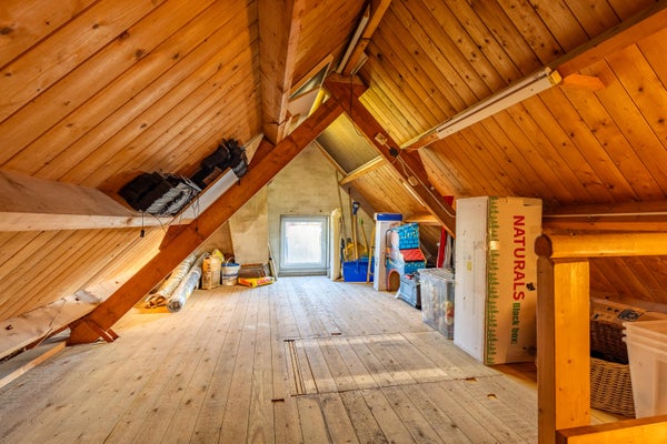 Zeker niet; vanuit de centrale hal sla je linksaf richting de praktische bijkeuken waar je gemakkelijk al je witgoed kwijt kan. Hier treffen we ook de Remeha CV-ketel en de verdeler van de vloerverwarming van de begane grond en de badkamer. Ook de omvormer van de zes zonnepanelen en de moderne meterkast met voldoende groepen is er te vinden. In de bijkeuken geeft een handige vaste trap (met vloerluik) ook toegang tot de royale bergzolder met stahoogte. Een verrassende ruimte die zich uitstekend leent voor uiteenlopen doeleinden. Thuiswerken, hobbyruimte of een extra slaapkamer is hier gemakkelijk te realiseren!