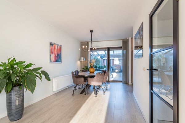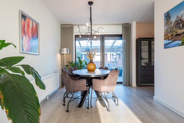 Gelegen in een rustige en kindvriendelijke woonwijk in Dinxperlo, biedt deze goed onderhouden halfvrijstaande woning met een oppervlakte van ongeveer 138 m² een ideale ruimte voor gezinnen. De lichte woonkamer met gashaard gaat naadloos over in de moderne open keuken, die van vele inbouwapparatuur is voorzien. Via de grote glazen schuifpui heeft u toegang tot een royale overkapping, perfect voor binnen-buiten leven. De begane grond heeft ook een bijkeuken en een omgebouwde garage, nu multifunctioneel te gebruiken als kantoor of hobbyruimte.