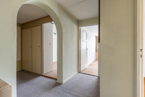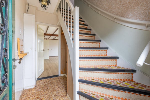 In 1920 werd de woning gebouwd. Zoals je ziet op het kadaster is het een driehoek die naar achteren breed uitwaaiert. Op de begane grond word je verrast door royale leefruimtes waar het licht gul naar binnen valt. We sommen op: een hal met bijkeuken, twee badkamers, drie slaapkamers, een kleine woonkamer achter en een grotere voor. Veel kastruimte en lekker praktisch als je voornamelijk op de begane grond wenst te bivakkeren.