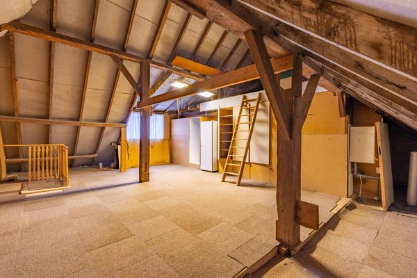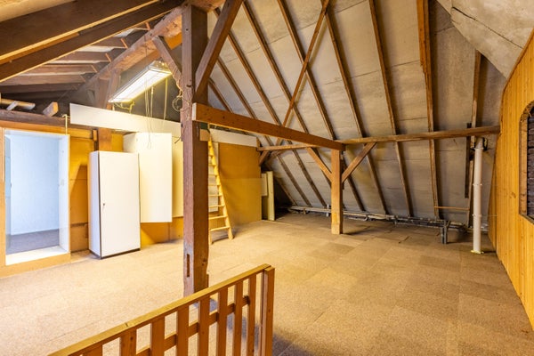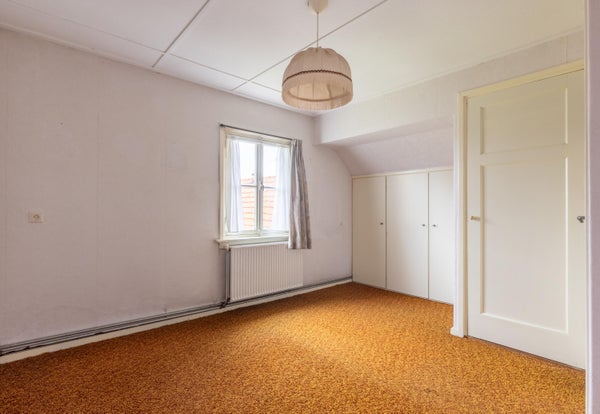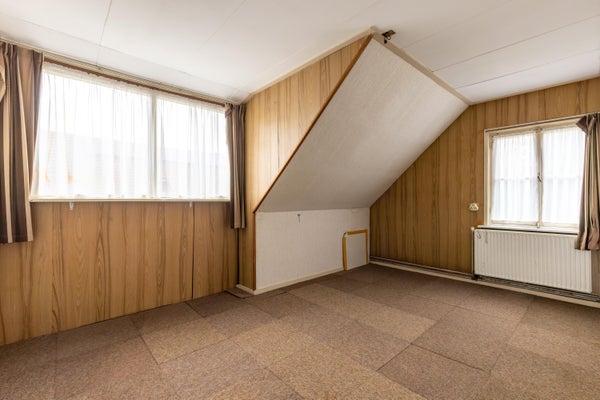 Boven ontmoeten we nog drie slaapkamers (twee met dakkapel opzij). Ook is er een megagrote zolder met meerdere mogelijkheden. Atelier? Speelzolder? Mancave? Opslagparadijs? Of misschien wel die droomstudio waar je al jaren over praat. Hier kan het. Het dakbeschot is van masonite platen.