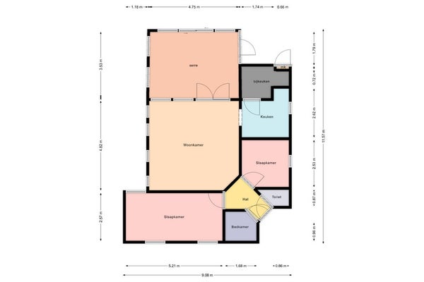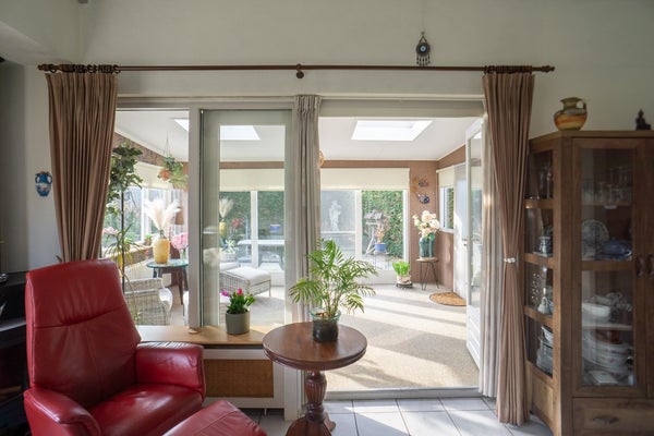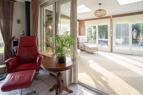 De indeling is praktisch: via de hal bereikt u het toilet, de badkamer, de slaapkamers en de woonkamer. Vanuit de woonkamer heeft u toegang tot de keuken, bijkeuken en serre, welke weer aansluit op de tuin.