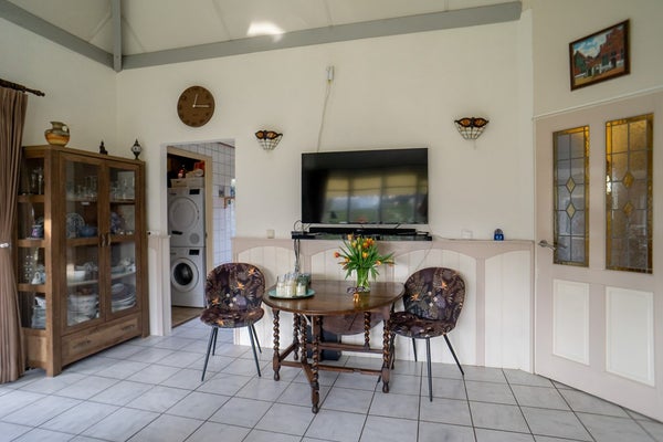De bungalow is licht en ruim opgezet. De woning heeft momenteel twee slaapkamers (voorheen drie) en een sfeervolle woonkamer met een puntdak, wat zorgt voor een extra ruimtelijk gevoel. De woonkamer staat in directe verbinding met de keuken en de royale serre, waardoor binnen en buiten mooi in elkaar overlopen. Verder beschikt de woning over een badkamer met douche en wastafel, een separaat toilet, een bijkeuken en een tuin rondom de woning met twee bergingen. Maak snel een afspraak om deze woning te komen bekijken