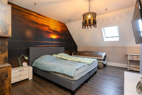 PVC vloer met vloerverwarming, bergruimte achter kastdeuren en slaapkamerraam vernieuwd in 2025.