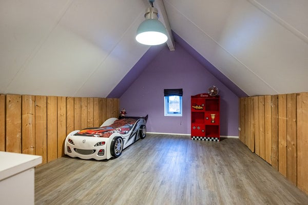 PVC vloer met vloerverwarming, kastruimte met unit mechanische afzuiging en 2 x Velux dakraam met verduistering.