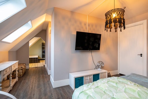 PVC vloer met vloerverwarming, 2 x Velux dakraam met verduistering, walk-in closet en badkamer 2 en-suite.