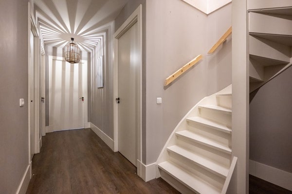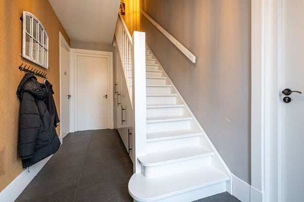 PVC vloer met vloerverwarming, airco en trapopgang naar zolderverdieping.