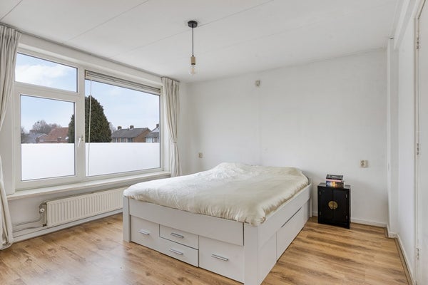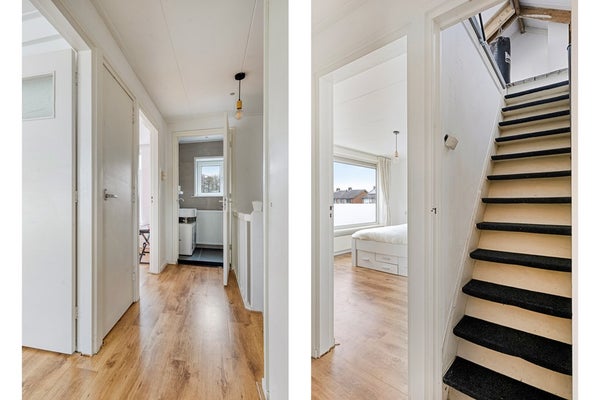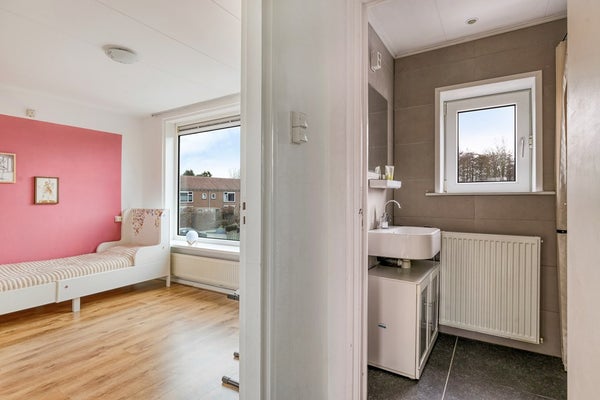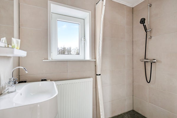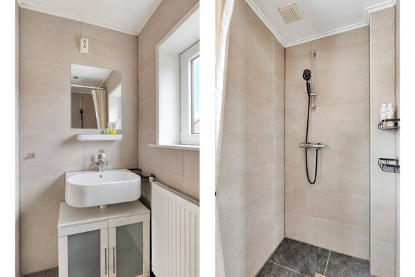 Op de overloop vind je een praktische inbouwkast. Deze verdieping telt drie slaapkamers. Dankzij de rechte voor- en achtergevel zijn de kamers efficiënt in te delen en voelt elke ruimte prettig ruim aan. De twee grootste slaapkamers beschikken bovendien over een eigen inbouwkast. De badkamer is voorzien van een douche en wastafel.