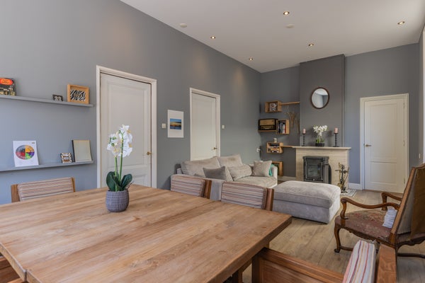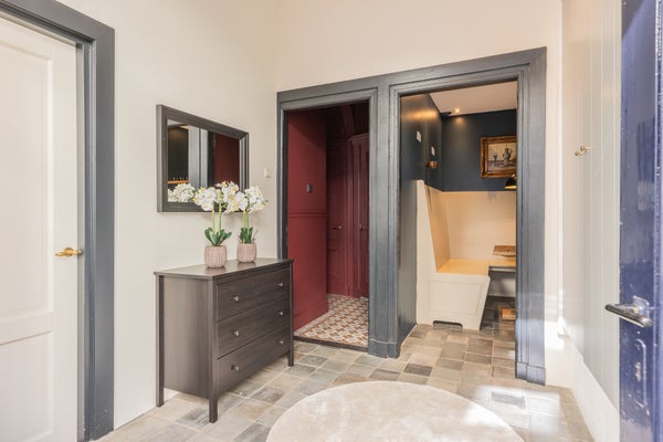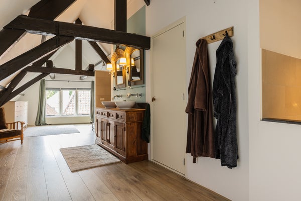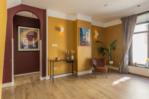 Koepoortstraat 33 biedt een unieke woonervaring in het historische centrum van Doesburg. Deze monumentale woning van ongeveer 237 m² combineert authentieke elementen met modern comfort, verdeeld over meerdere niveaus. Bij binnenkomst valt de bijzondere sfeer op: hoge plafonds en originele details vormen een warme ambiance. De begane grond is een uitnodigende leefruimte met een houtkachel en royale woonkeuken, perfect voor samenzijn. Op de verdiepingen zijn meerdere woon- en slaapvertrekken, waaronder twee badkamers en een loftachtige master bedroom met walk-in closet. De karakteristieke kelders zijn ideaal voor wijnliefhebbers. Hoewel er geen traditionele tuin is, biedt het terras een plek om buiten te genieten. Deze woning is perfect voor wie houdt van karakter, ruimte en creativiteit in de stad.
