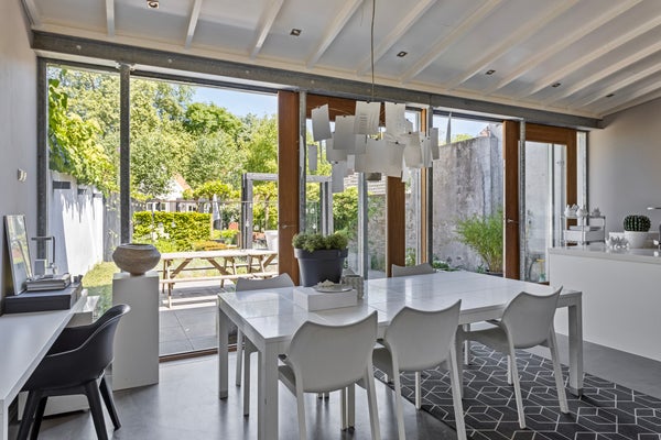 In het hart van de historische binnenstad van Doesburg ligt dit unieke herenhuis, vol karakter en stijl. Het rijksmonument combineert originele details met modern comfort. Bij binnenkomst via de stijlvolle entree ontdek je een praktische werkkamer en een sfeervolle kamer-en-suite met hoge plafonds en een houtkachel. De lichte woonkeuken in de serre biedt een prachtig uitzicht op de diepe stadstuin, ideaal voor elke thuiskok. Op de eerste verdieping zijn drie slaapkamers, een luxe badkamer met ligbad en extra voorzieningen. De tweede verdieping bevat een atelier, twee slaapkamers en een tweede badkamer. De kelder biedt opslagmogelijkheden, terwijl de zonnige stadstuin met garage een privéplek in de stad creëert. Dit herenhuis, met zeven slaapkamers en uitstekende ligging, is een bijzondere woonervaring.