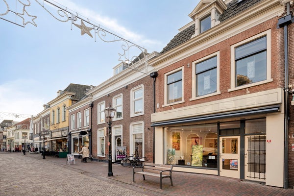 Dit woon-/winkelpand in de historische binnenstad van Doesburg biedt een unieke kans om wonen en werken te combineren. Met een totaal van 161 m² woonoppervlakte en een winkelruimte van 53 m², ligt het pand perfect voor wie creatieve ideeën wil realiseren. De winkelruimte op de begane grond heeft een eigen entree en biedt mogelijkheden voor een conceptstore of atelier. Boven bevindt zich een verzorgde, lichte bovenwoning van 114 m², met een gezellige woonkamer, open keuken en toegang tot een zonnig balkon. Op de tweede verdieping zijn er twee slaapkamers en een badkamer. Dit pand, met gemeentemonumentenstatus, beschikt over een achtertuin en een dakterras, waardoor het wonen hier comfortabel en inspirerend is.