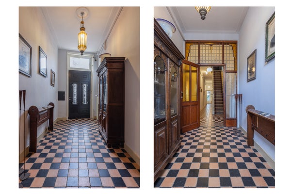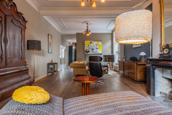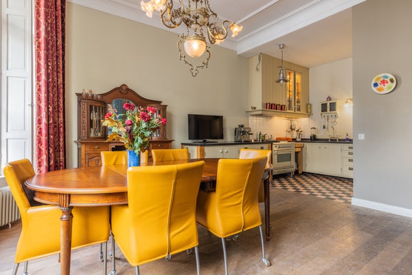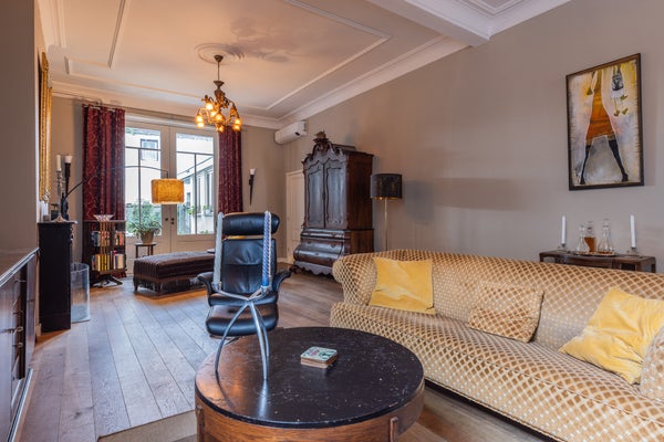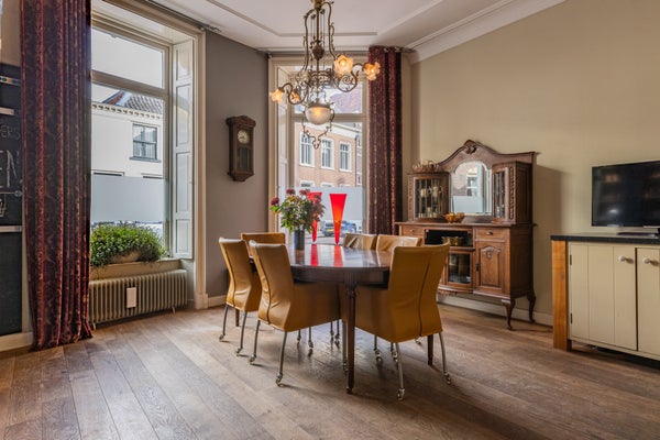 In een van de mooiste straten in de historische binnenstad van Doesburg staat dit statige herenhuis, een gemeentelijk monument van 316 m² met 5 slaapkamers en een zonnige stadstuin op het westen. De hoge plafonds, authentieke details zoals ornamenten en glas-in-lood, en de gewelfde kelder maken het geheel bijzonder. De begane grond bevat een landelijke keuken met modern Borretti gasfornuis, een elegante woonkamer met openslaande deuren naar de tuin, en een bijkeuken met toegang tot de buitenruimte. Op de eerste verdieping zijn vier slaapkamers, waaronder een hoofdslaapkamer met walk-in closet en balkon. De zolder biedt talloze mogelijkheden met uitzicht op de mooie eikenhouten dakconstructie. Recentelijk energiezuiniger gemaakt met energielabel C en 9 zonnepanelen. Een unieke woonervaring die historie, ruimte en comfort combineert.