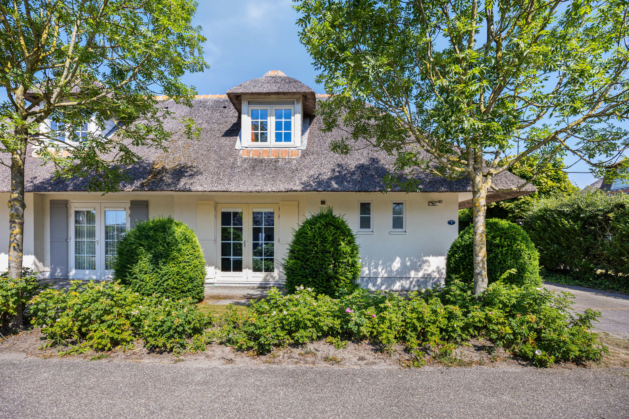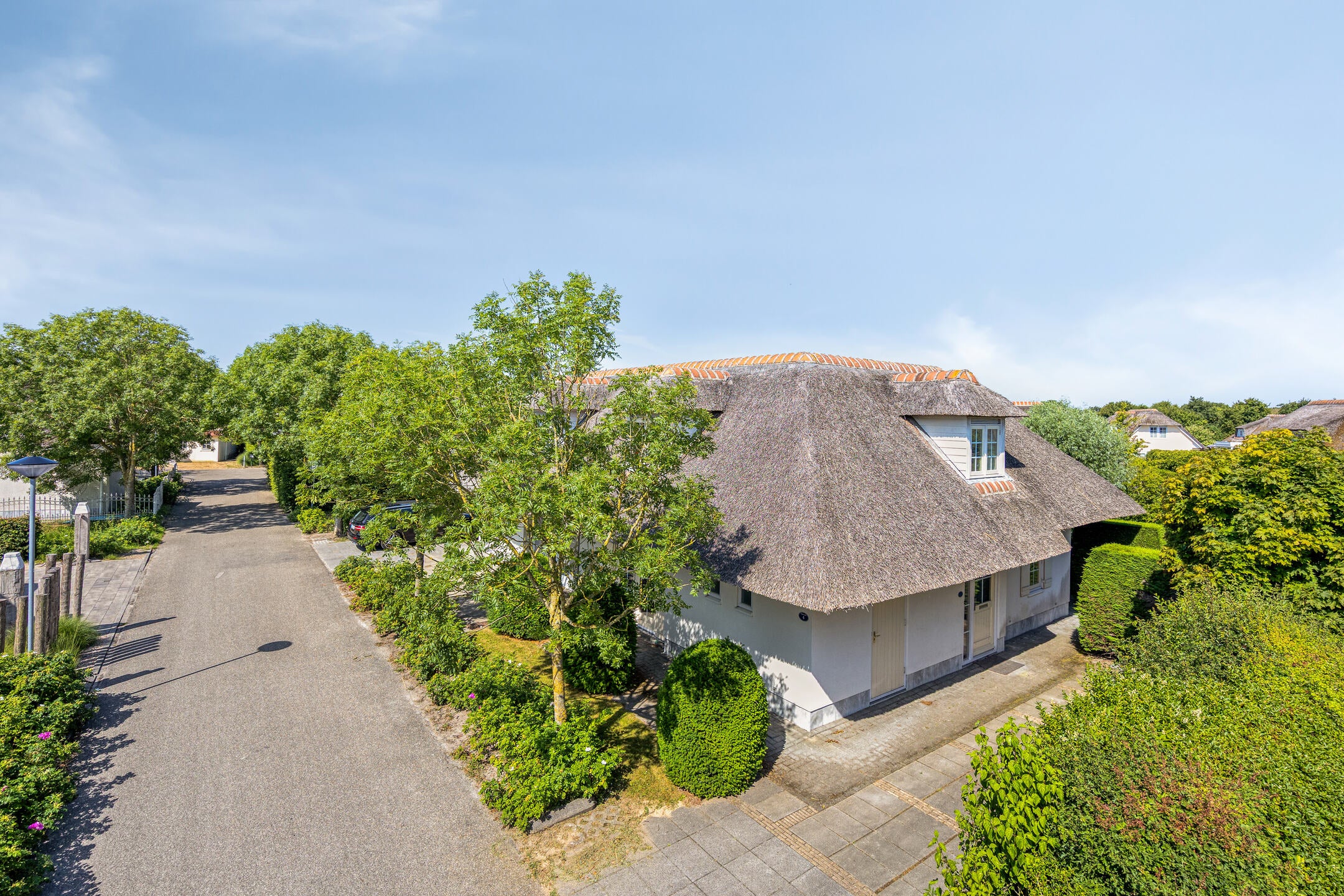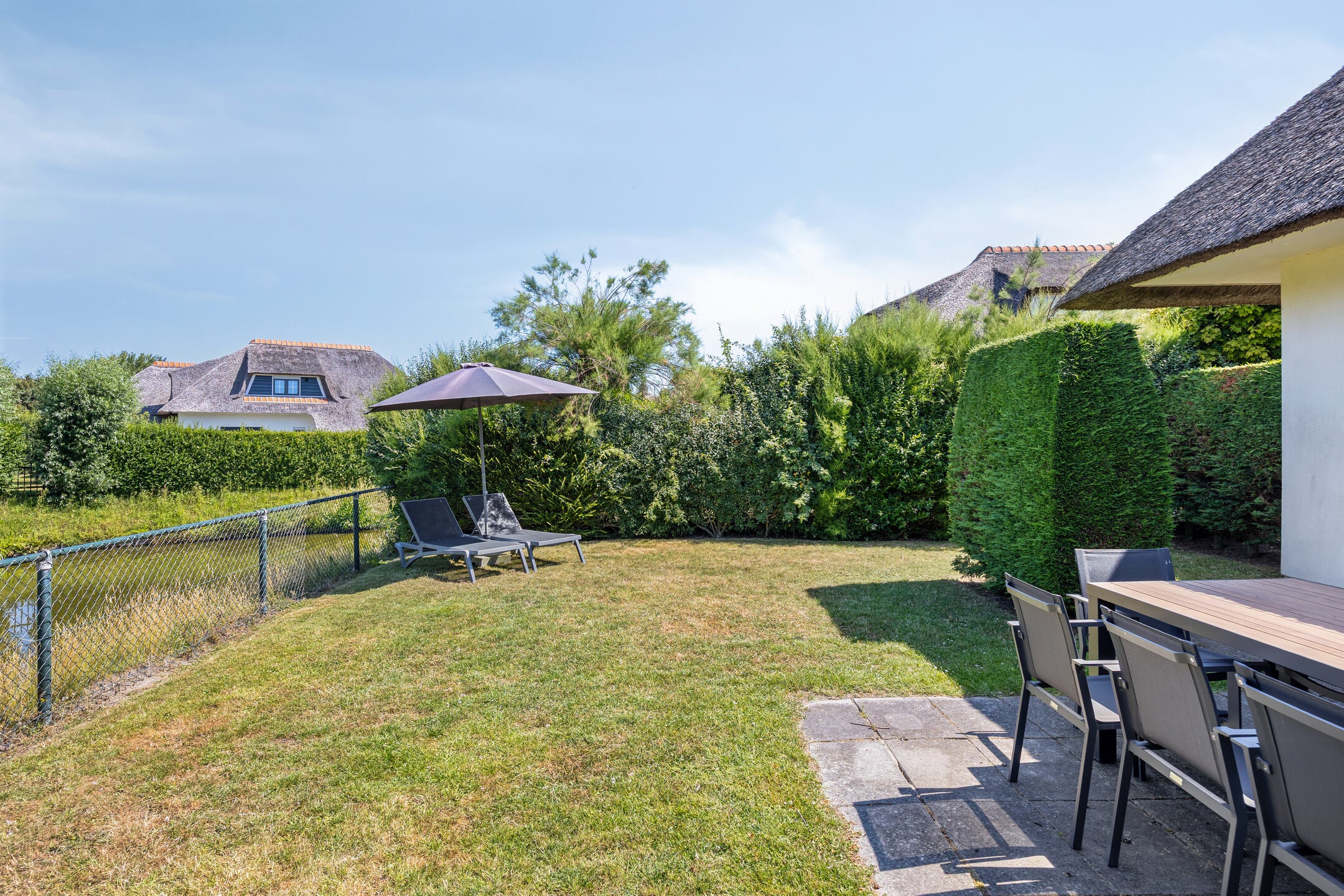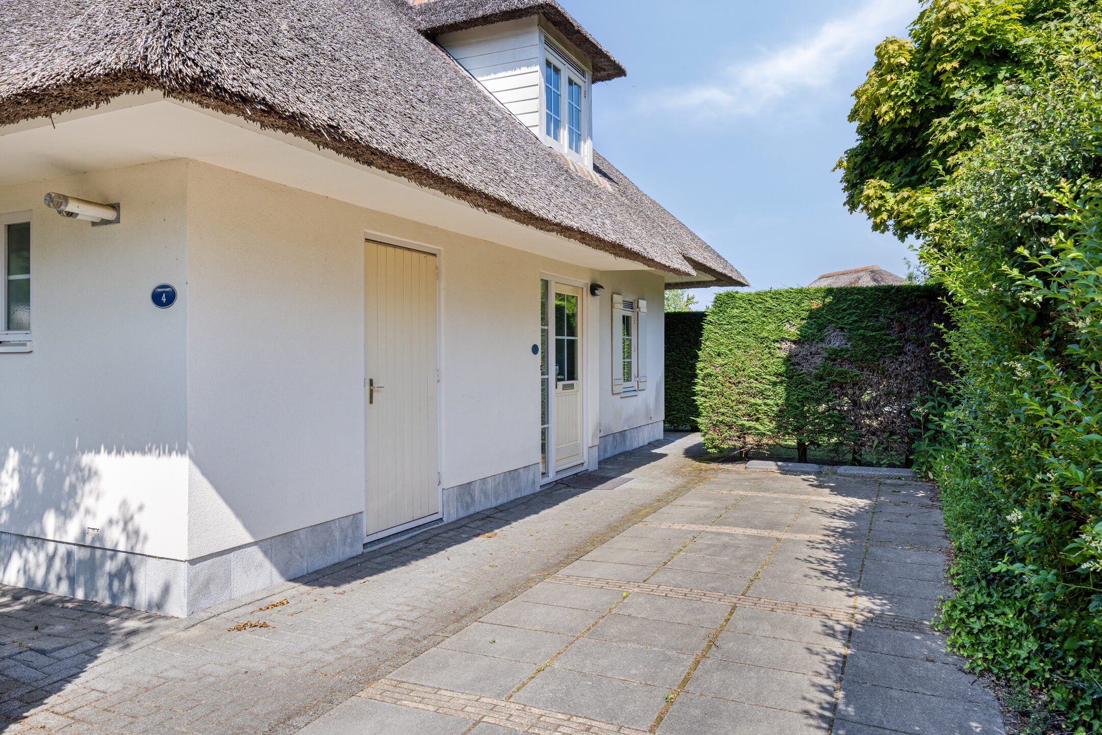 In de badplaats Domburg staat deze semi-vrijstaande recreatievilla met 4 slaapkamers, 2 badkamers en een sauna. De villa, met een karakteristiek rieten dak, is recentelijk gerenoveerd en ligt aan een waterpartij in een rustige straat van het park Buitenhof Domburg. Dit park staat alleen lokale verkeer toe.