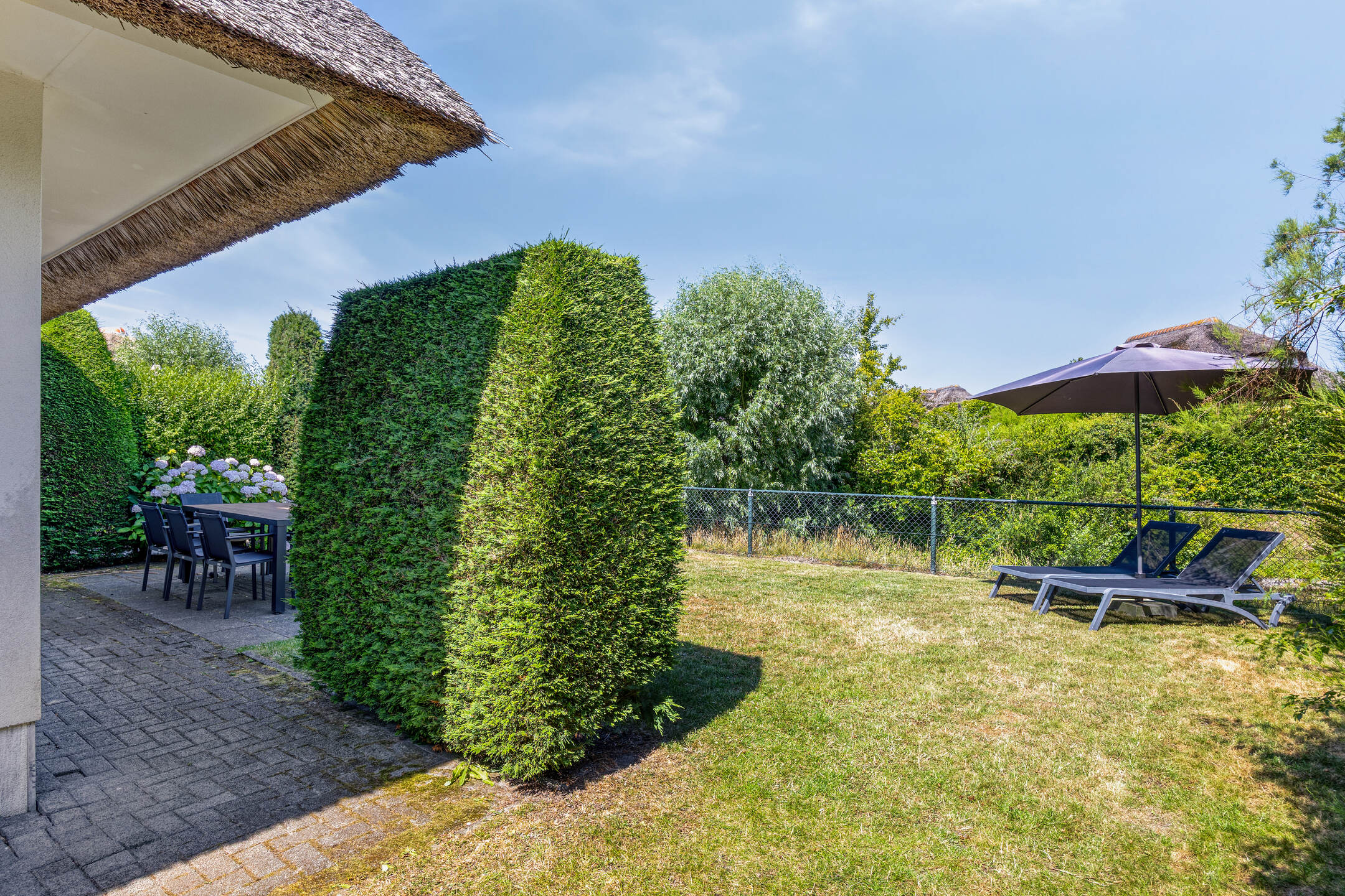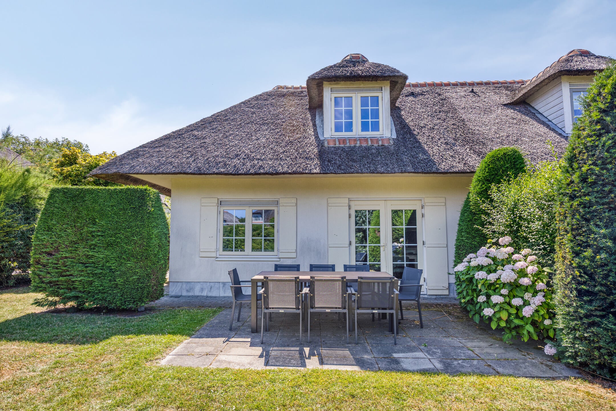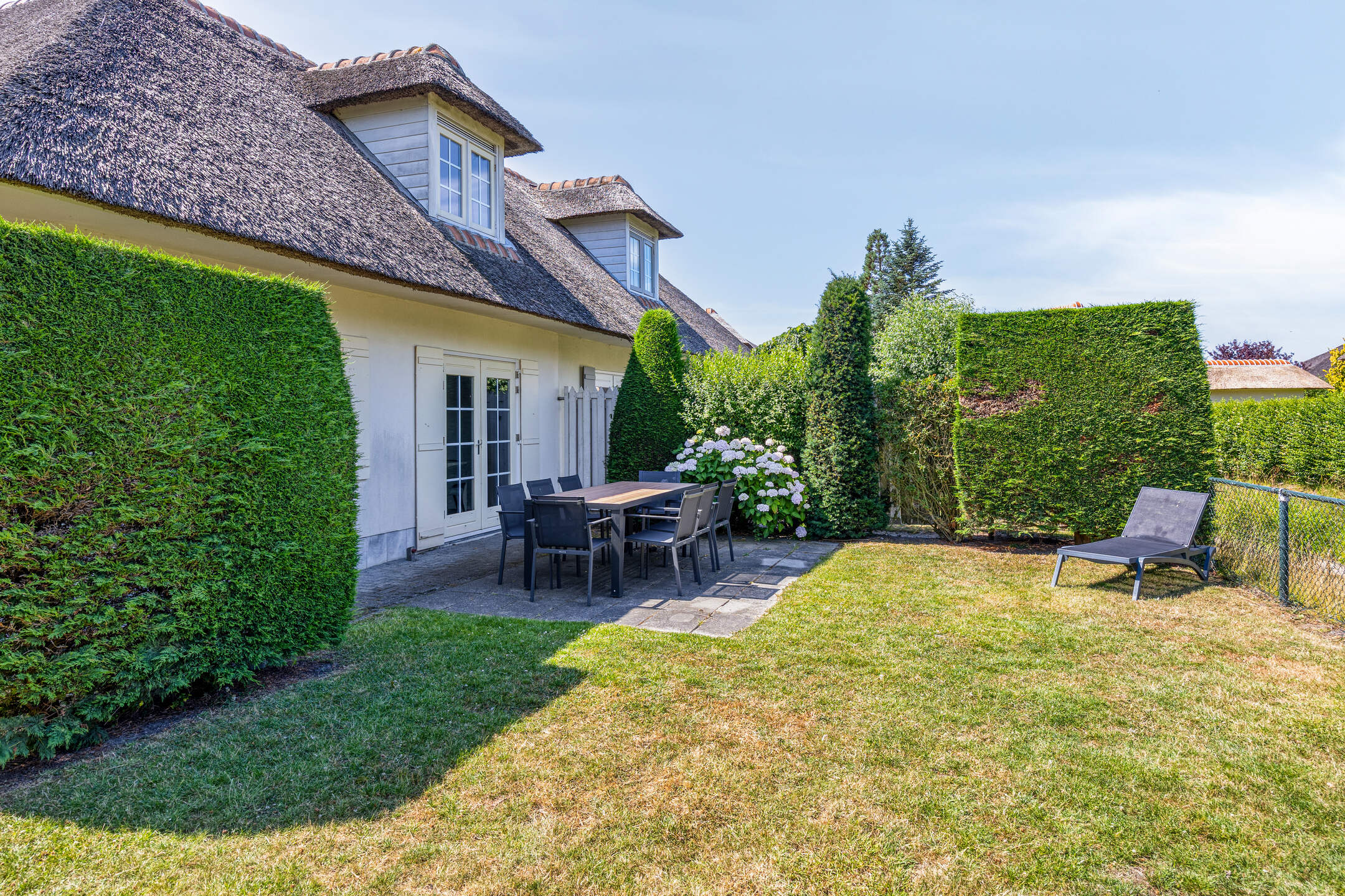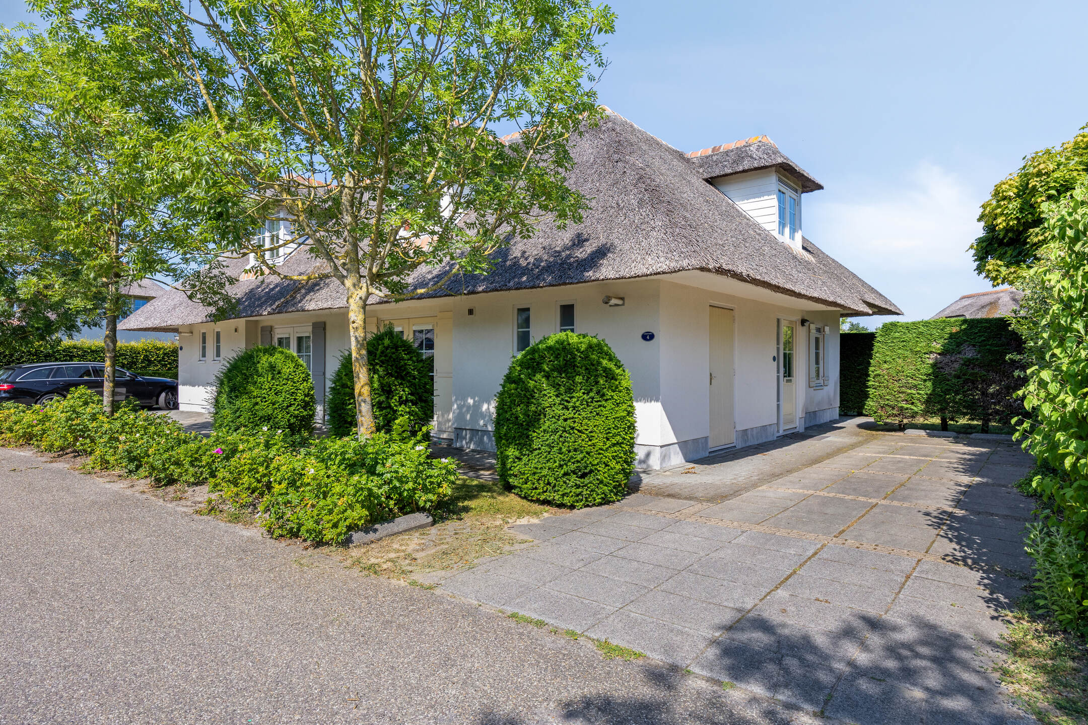 In de badplaats Domburg staat deze semi-vrijstaande recreatievilla met 4 slaapkamers, 2 badkamers en een sauna. De villa, met een karakteristiek rieten dak, is recentelijk gerenoveerd en ligt aan een waterpartij in een rustige straat van het park Buitenhof Domburg. Dit park staat alleen lokale verkeer toe.