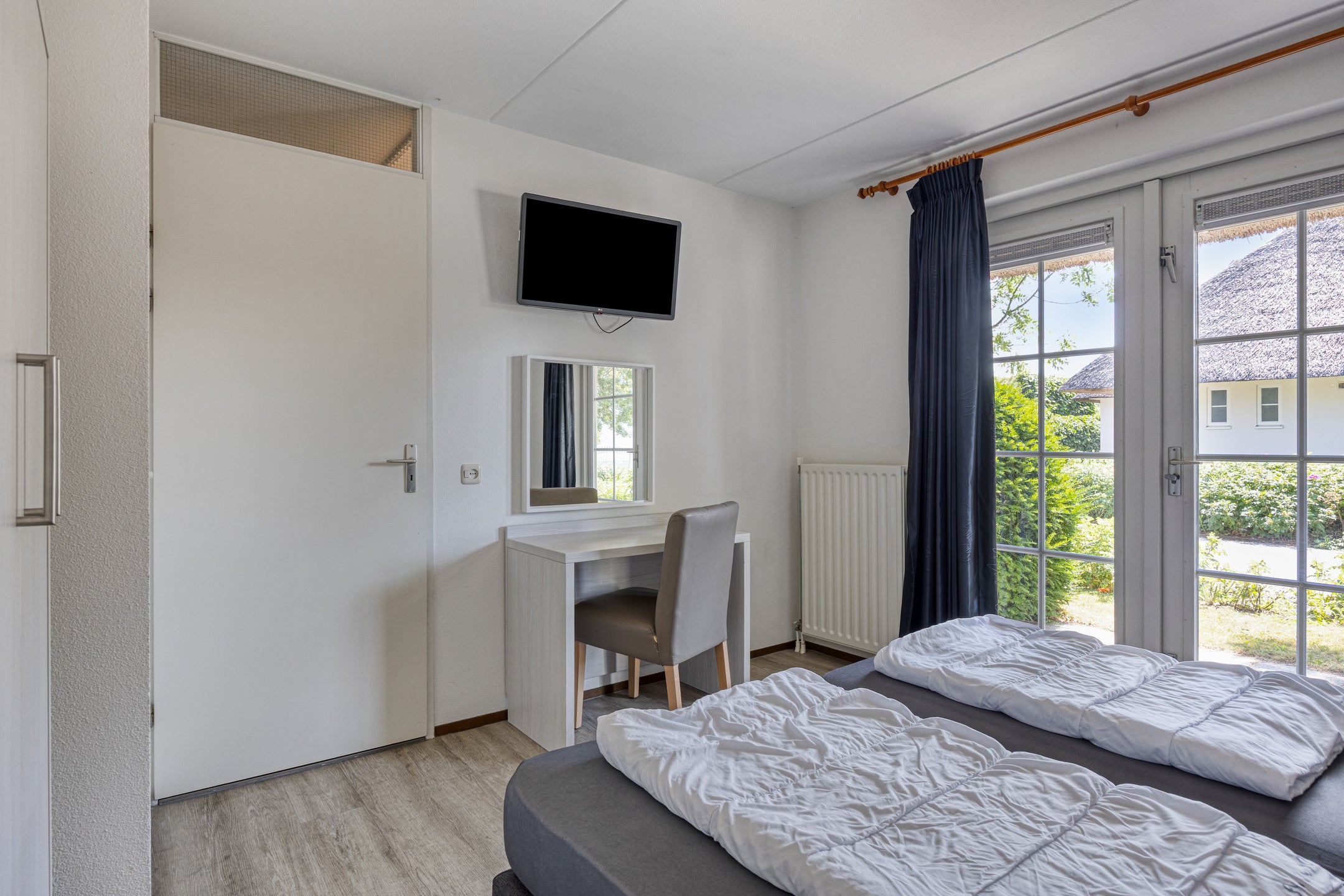 Binnen verwelkomt de hal u in een ruime woonkamer met openslaande deuren naar de tuin en een open keuken die van inbouwapparatuur is voorzien. De benedenverdieping heeft ook een slaapkamer met een eigen badkamer. Op de eerste verdieping vindt u drie slaapkamers, een badkamer met douche, toilet, en sauna. De tuin biedt voldoende ruimte voor buitenactiviteiten en parkeren is mogelijk aan de zijkant van de villa. Deze recreatiewoning is ideaal voor zowel eigen gebruik als verhuur via Roompot Recreatie.