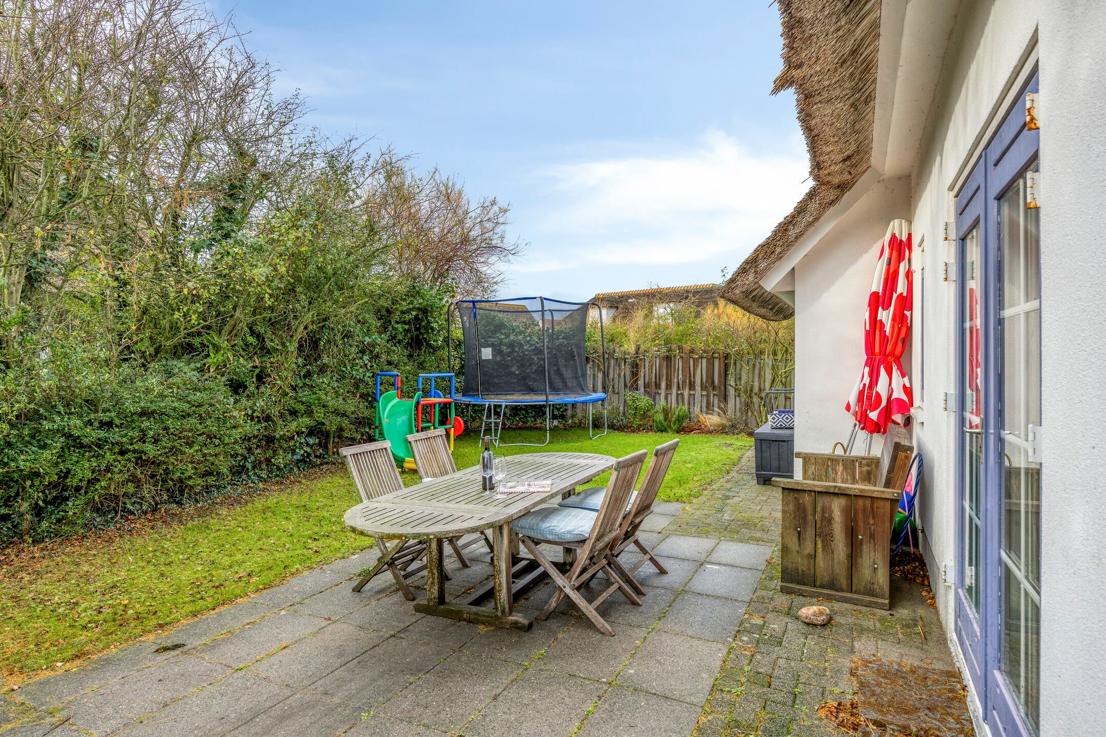 Deze vrijstaande recreatiewoning, gelegen in Buitenhof Domburg, beschikt over 4 slaapkamers en 2 badkamers. De woning heeft een aangename indeling met een entree, hal, toilet, woonkamer en open keuken met inbouwapparatuur. Grote ramen en openslaande tuindeuren zorgen voor veel lichtinval. Op de begane grond bevindt zich een ruime slaapkamer met eigen badkamer, evenals een bijkeuken met toegang tot een aangebouwde berging. Op de eerste verdieping zijn er nog eens 2 slaapkamers en een badkamer met ligbad en douche. Buiten geniet je van een afgesloten tuin met terras en parkeergelegenheid op eigen terrein. De locatie is ideaal, op loopafstand van het strand en het centrum van Domburg.