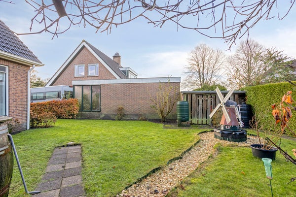 Deze vrijstaande woning in Donkerbroek is gelegen op een royaal perceel van 456 m². De woning biedt een praktische indeling met een slaapkamer op de begane grond, ideale voor gezinnen. De entree leidt naar een hal met trapopgang en toilet, waarna u de lichte woonkamer met eetgedeelte binnenkomt. De woonkamer heeft grote ramen die zorgen voor veel lichtinval en uitzicht op de tuin. Aansluitend vindt u de keuken en bijkeuken. Op de verdieping zijn drie slaapkamers, één met toegang tot een balkon, en een badkamer met douche, ligbad en wastafel. De tuin rondom het huis biedt mogelijkheden voor terrassen en speelruimte. De woning beschikt verder over een garage, meerdere bergingen, en heeft energielabel C.