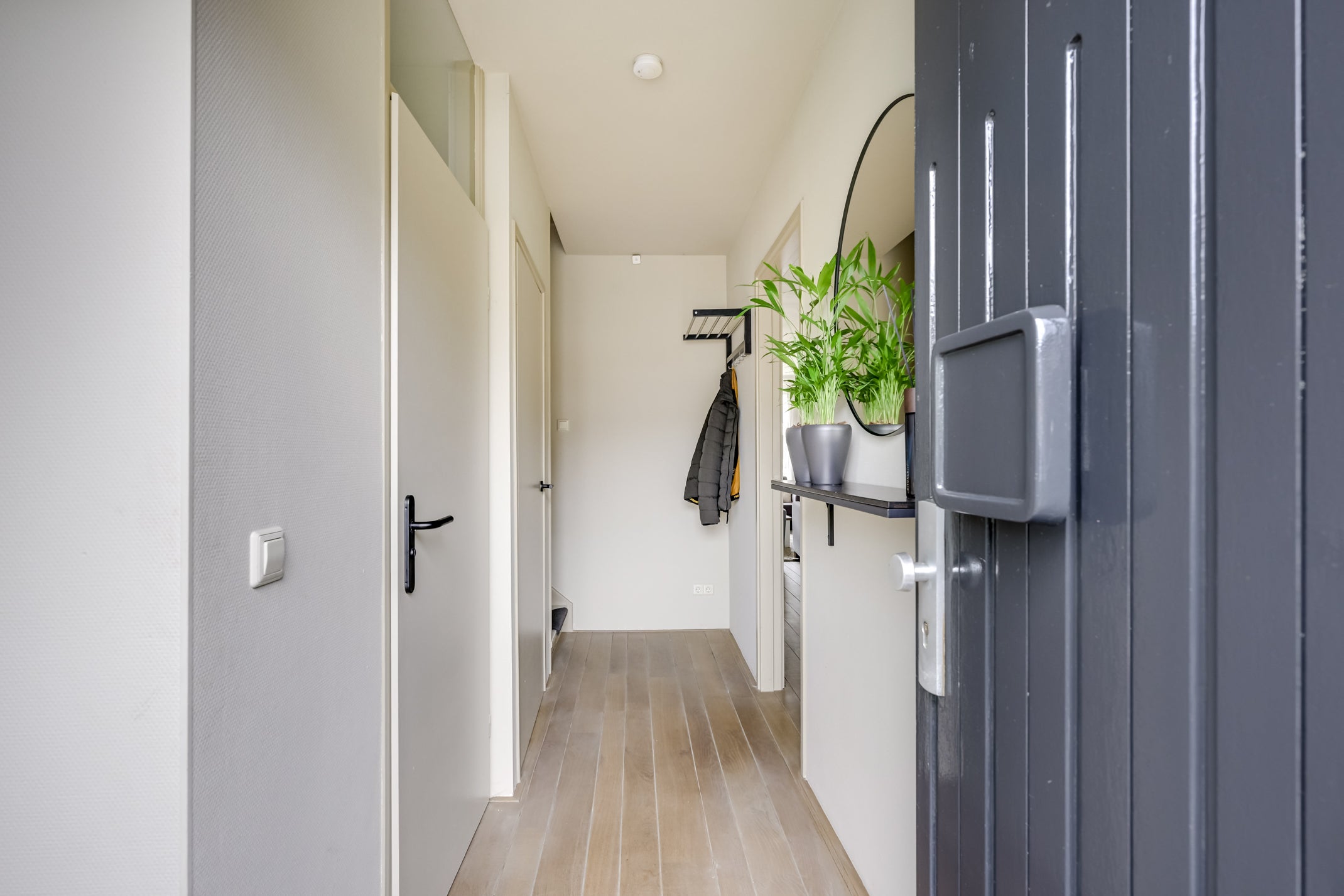 Deze moderne hoekwoning ligt aan een rustig pleintje in de groene wijk Doorn. De woning heeft een ruime en lichte woonkamer, dankzij een aanbouw met een bijna volledig glazen achterpui. De open keuken, met inbouwapparatuur, biedt ook veel daglicht. Op de eerste verdieping bevinden zich drie slaapkamers en een badkamer met vloerverwarming, inloopdouche en toilet. De tweede verdieping herbergt een vierde slaapkamer met een groot dakkapel. Deze woning heeft een onderhoudsvriendelijke voor- en achtertuin op het zuidwesten, met een stenen schuur. Voorzieningen zoals basisschool en kinderopvang zijn op loopafstand, en het centrum is binnen vijf minuten fietsen bereikbaar. Woonoppervlak is 119 m², en het perceel is 123 m².