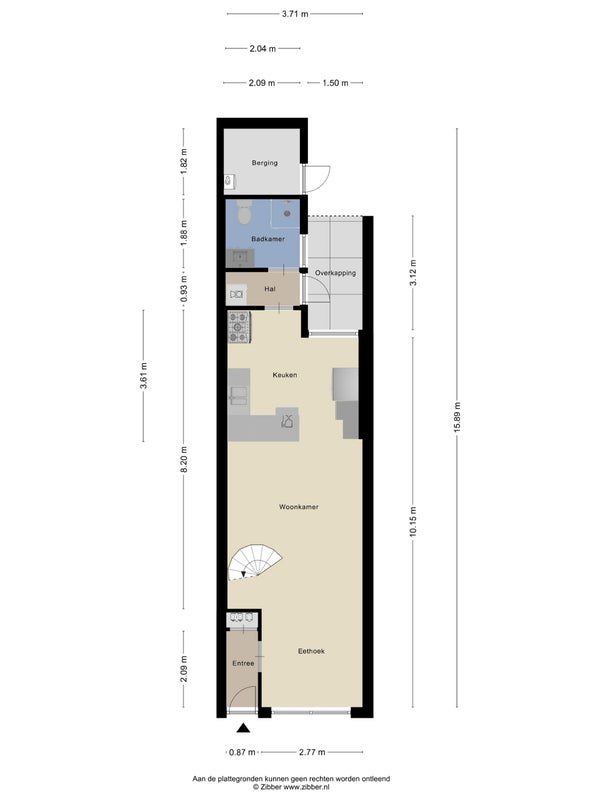 - Aanwezig (13 m², gelegen op het noordoosten)