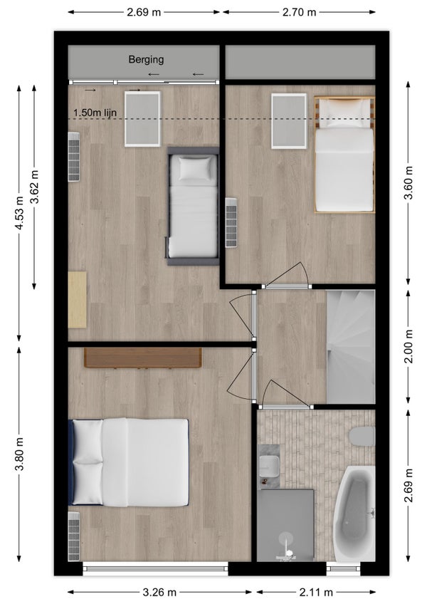- De tussenwoning heeft een woonoppervlakte van 111 m² en beschikt over 5 kamers, waarvan 4 slaapkamers;