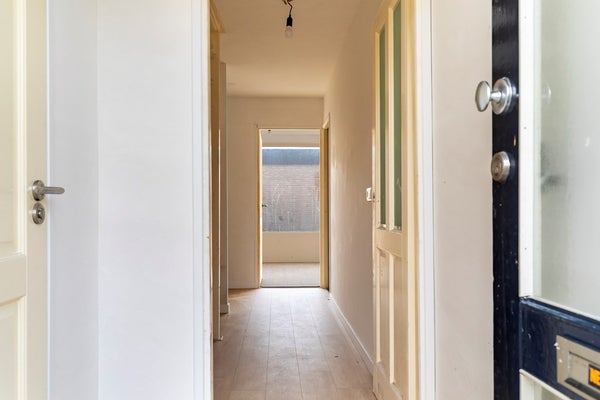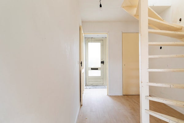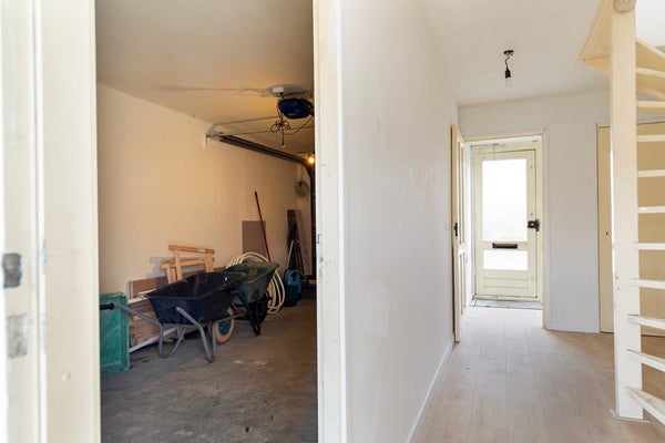 Vanuit deze hal is er toegang tot de inpandige garage en tot de achtergelegen slaap-/tuinkamer aan de achterzijde van de woning. Ook bevindt zich hier tevens de trap naar de eerste verdieping.