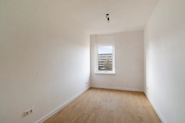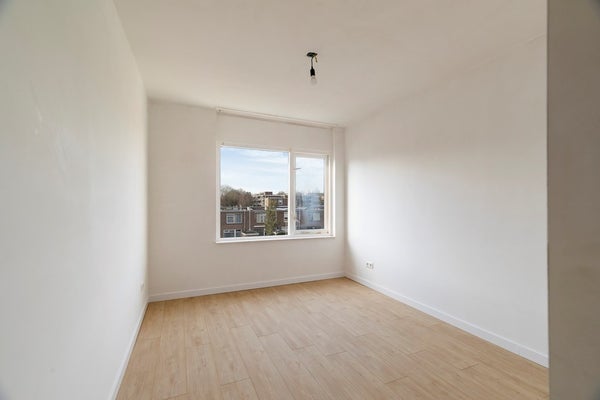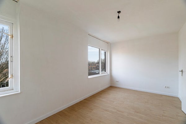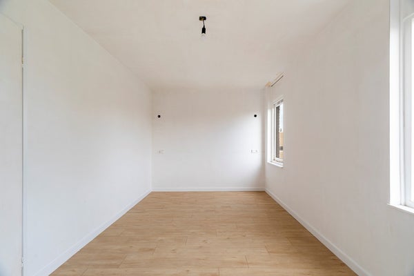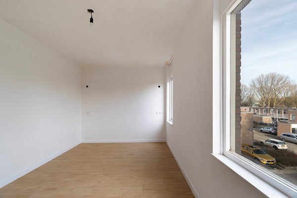 Aan de voorzijde van de woning bevindt zich een ruime slaapkamer die is afgewerkt met een laminaatvloer en prettig van formaat is. Aan de buitenzijde is een voorbereiding getroffen voor het plaatsen van (zonne-energie gestuurde) rolluiken.
