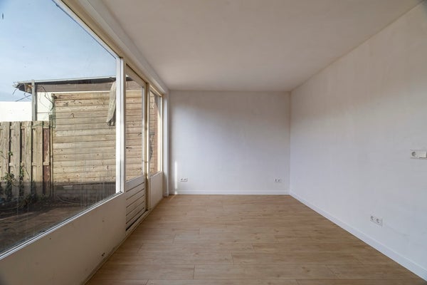 Aan de achterzijde van de woning bevindt zich een ruime slaapkamer die ook uitstekend kan dienen als werk- tuin of hobbykamer waarbij de ruimte is afgewerkt met een laminaatvloer en gestucte wanden en plafond. Deze kamer beschikt over grote raampartijen die zorgen voor veel lichtinval en hier bevindt zich tevens de aansluiting voor de wasmachine.