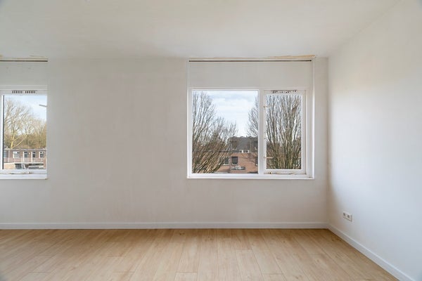Aan de achterzijde van de woning bevinden zich twee slaapkamers die beide zijn voorzien van een laminaatvloer en geschikt zijn als slaap, werk of kinderkamer. Aan de buitenzijde is een voorbereiding getroffen voor het plaatsen van (zonne-energie gestuurde) rolluiken.