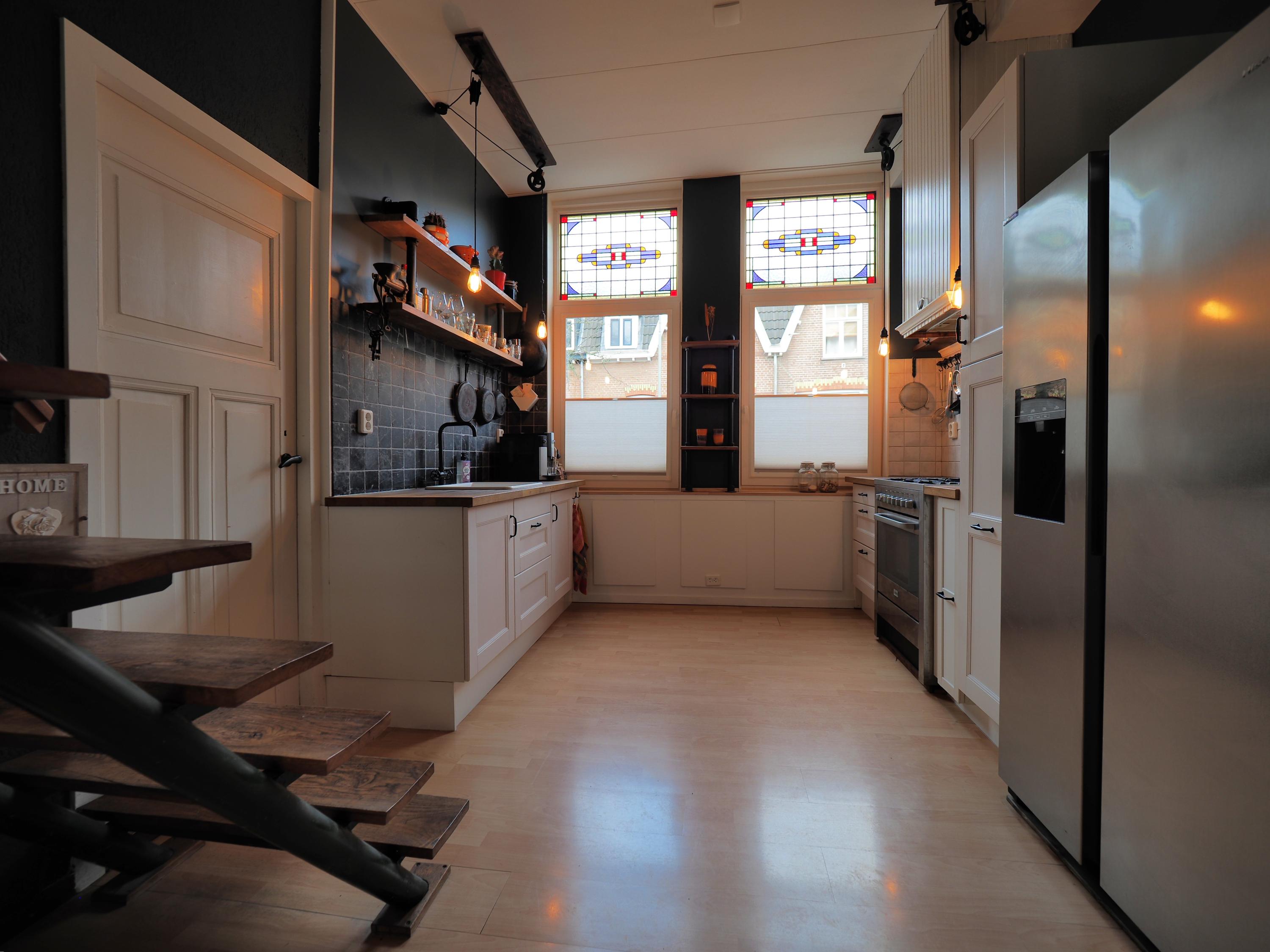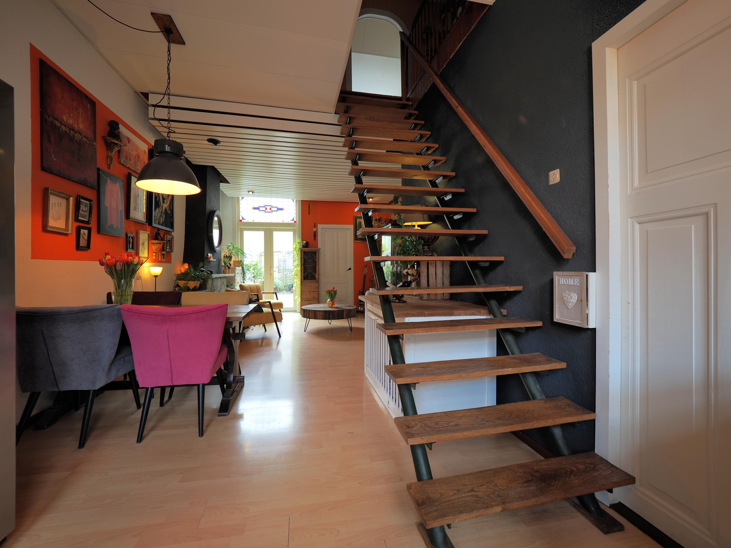Deze karakteristieke tussenwoning uit 1909, gelegen in een rustige straat nabij het centrum van Dordrecht, is grotendeels gerenoveerd. De woning heeft een woonoppervlakte van ca. 88 m², verdeeld over twee verdiepingen plus een bergzolder. In 2024 is het dak geïsoleerd en zijn kunststof kozijnen met HR++ glas geplaatst, wat bijdraagt aan energielabel C. De begane grond heeft een imposante entree met ruime bergruimte, een woonkamer met gashaard en openslaande tuindeuren naar de zonnige tuin op het zuiden. De open keuken is vernieuwd in 2022. De vernieuwde badkamer bevindt zich op de begane grond. Op de eerste verdieping zijn twee slaapkamers en een multifunctionele ruimte. De bergzolder biedt extra opslagruimte. De achtertuin is voorzien van een houten berging.