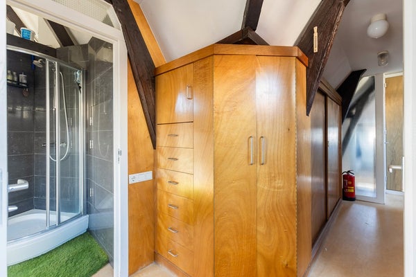 Overloop voorzien van vaste kastruimte, en toegang tot de twee sfeervolle zolderslaapkamers en de badkamer