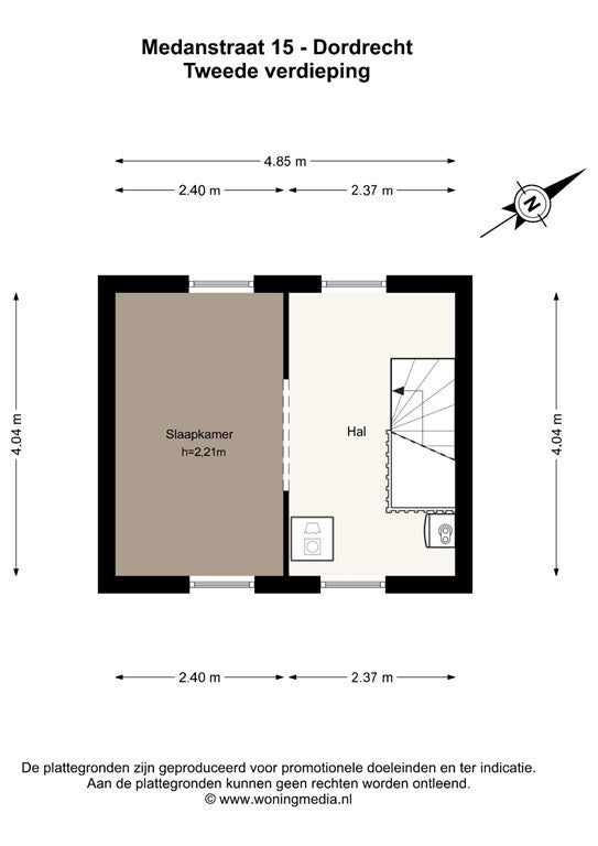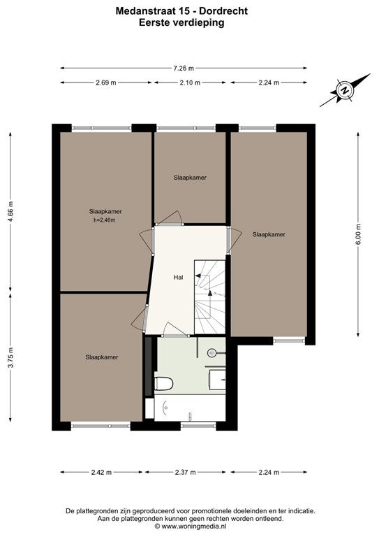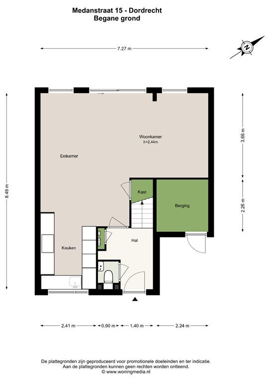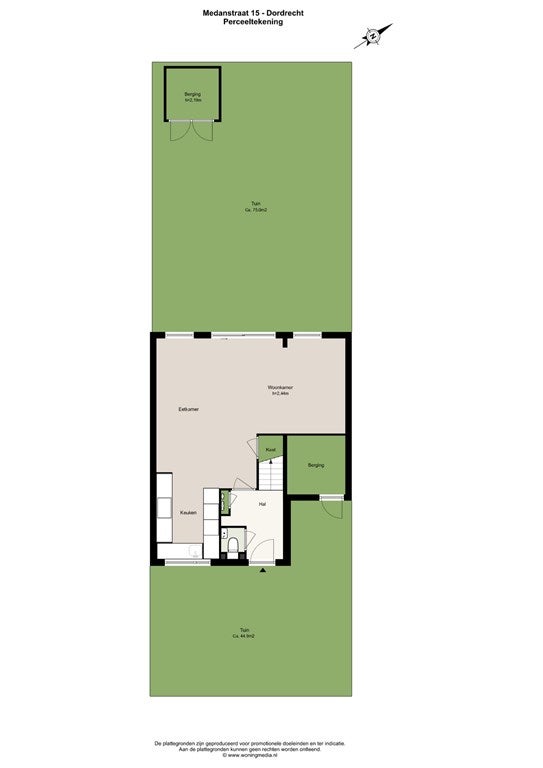 - Aanwezig (73 m², gelegen op het zuidwesten)