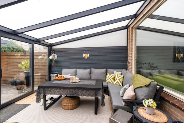 Aan de voorkant vind je een praktische voortuin, perfect om fietsen kwijt te kunnen dankzij de extra berging.