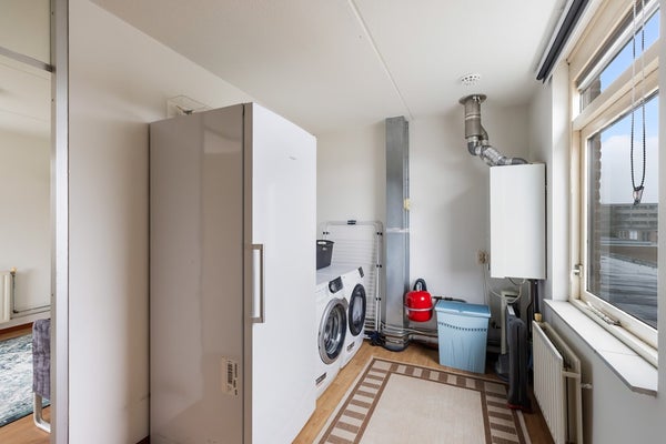 Op de bovenste etage vind je nog een grote technische ruimte met de eigen Vaillant cv-ketel (uit 2000, eigendom) en de opstelling was apparatuur. Boven de trap is een handig berghok geplaatst. Daarnaast een riante (master?) slaapkamer wat het totaal op 4 slaapkamers zet.