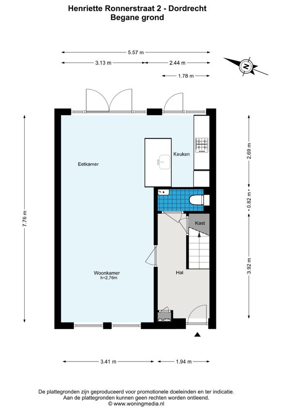 • De hoekwoning heeft een woonoppervlakte van 83 m² en beschikt over 5 kamers, waarvan 3 slaapkamers;