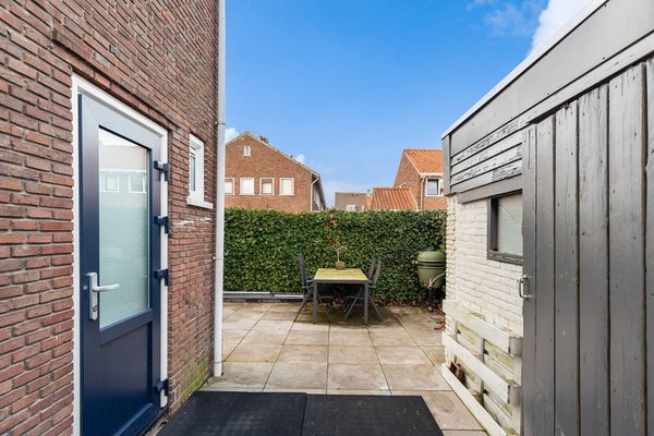 Sfeervolle tuin rondom de woning, gesitueerd op het zonnige zuiden, westen en noorden, met achterom. De zonnige voortuin op het zuiden biedt een prachtig uitzicht over de rivier het Wantij, tegenover de jachthaven en de roeivereniging.